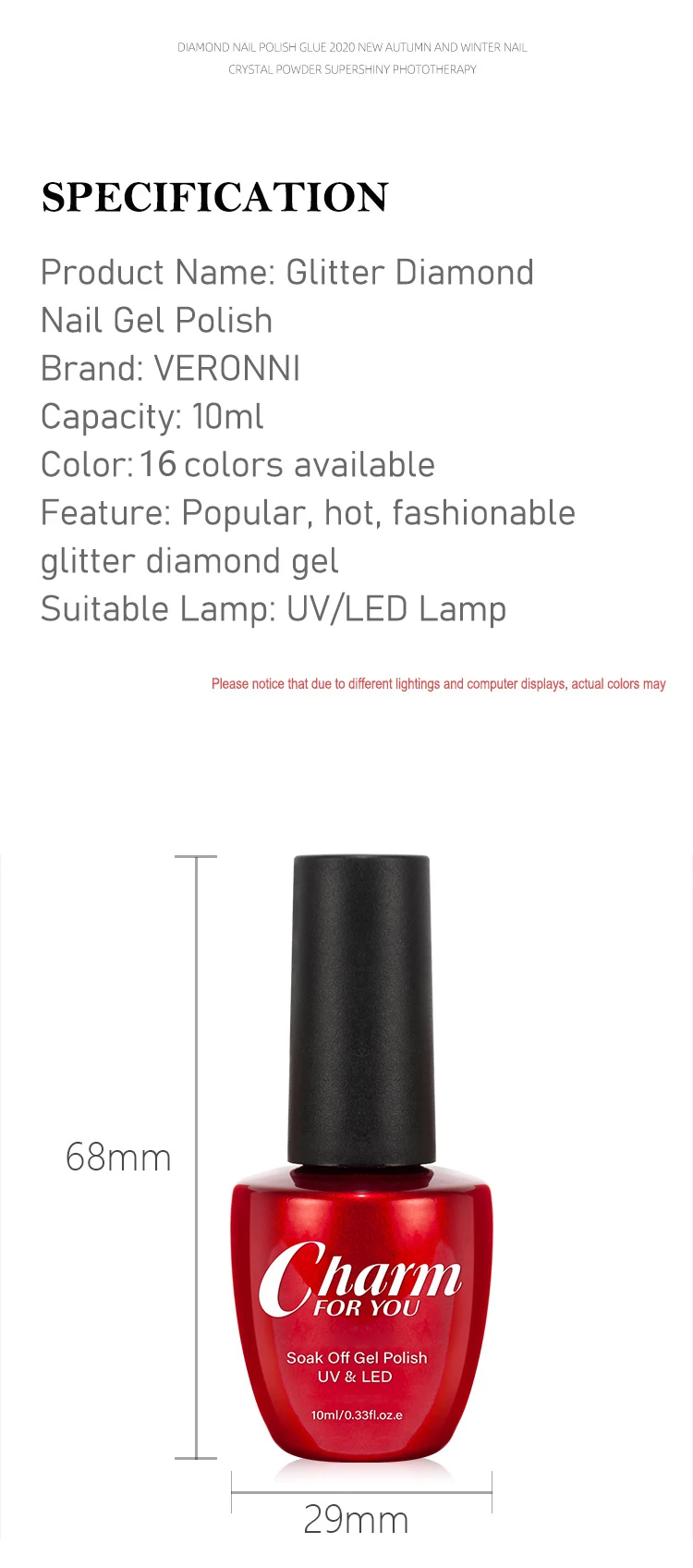VERONNI Светоотражающая лампа 10 мл сверкающий лак для ногтей Auror...