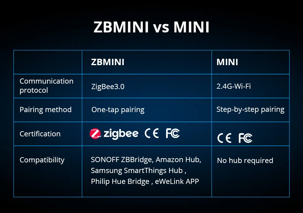 SONOFF ZBMINI-это двухсторонний смарт-коммутатор с поддержкой ZigBee, совместимый с различными концентраторами, включая SONOFF ZBBridge, Amazon Hub, Samsung SmartThings Hub и Philips касается Хюэ-концентратора. Протокол ZigBee3.0 позволяет быстро соединить ZBMINI и ZigBee bridge. ZBMINI безопаснее использовать в вашем доме, что обещает огнестойкий и огнестойкий корпус. Кроме того, шифрование AES-128 обеспечивает безопасность и конфиденциальность данных. Не беспокойтесь о раскрытии конфиденциальности вашего устройства. Может использоваться как маршрутизатор Zigbee для передачи сигнала ZigBee для обеспечения стабильного соединения при использовании нескольких устройств Zigbee в вашем доме. Если вы заинтересованы в двустороннем управлении, вы можете подключить однополюсный двухпозиционный переключатель в качестве внешнего подключения для расширения способа управления.