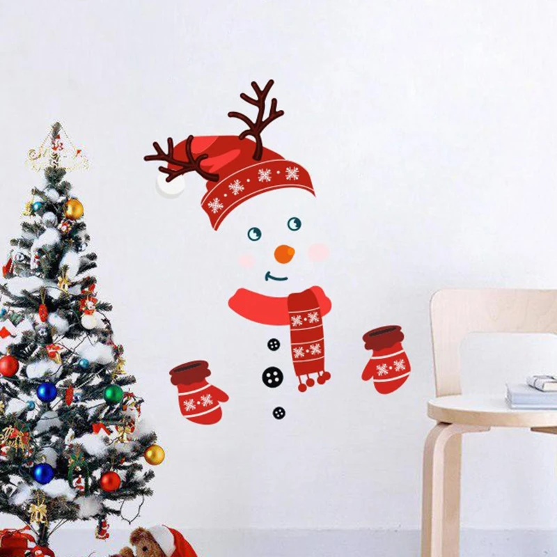 Рождественская Наклейка на окно, наклейки на холодильник со снегови...