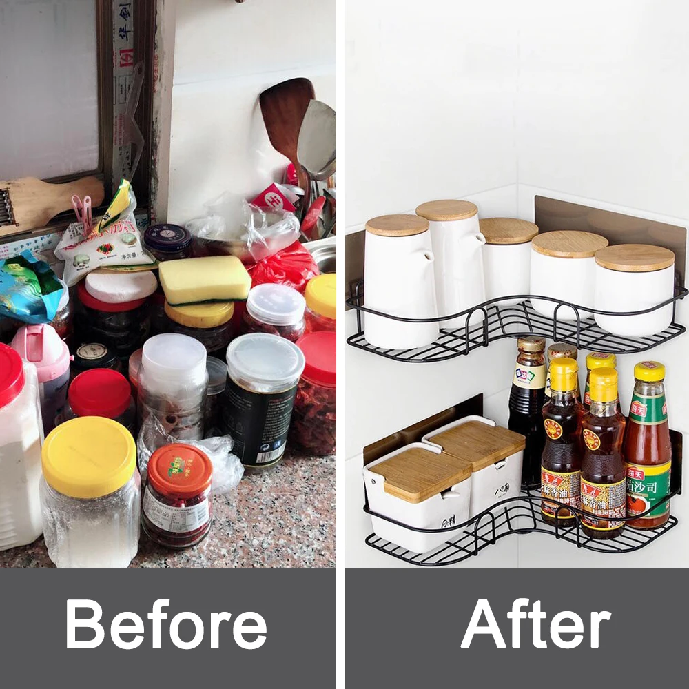 Угловая полка для ванной и душа, настенные самоклеящиеся кухонные принадлежности, стеллаж для хранения туалетных принадлежностей, органайзер, железная рама для шампуня с крючком