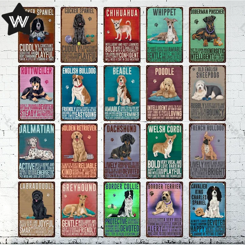 Винтажное украшение в виде пуделя, Бигля, ротвейлера, искусственный жестяной знак, аксессуары для украшения сада, потертые наклейки на стену