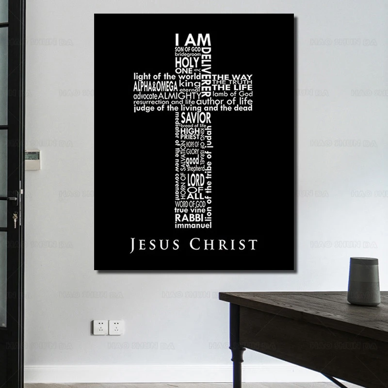 Названия Иисуса в кресте-настенная печать с Библией, современное типографическое искусство, Декор для дома, офиса и церкви. Прекрасный Христианский подарок.
