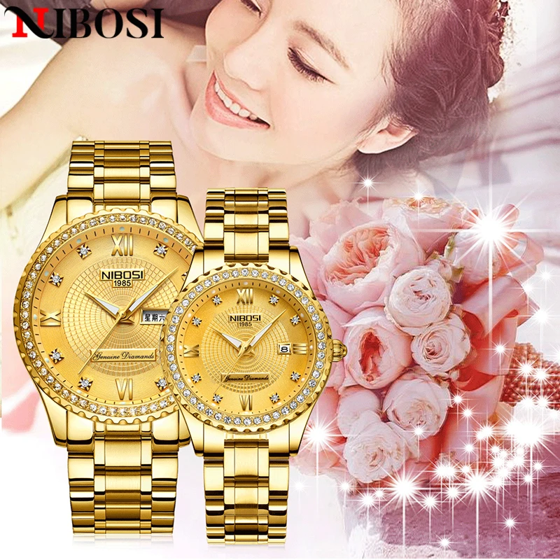 Часы наручные NIBOSI для влюбленных, брендовые роскошные золотистые...