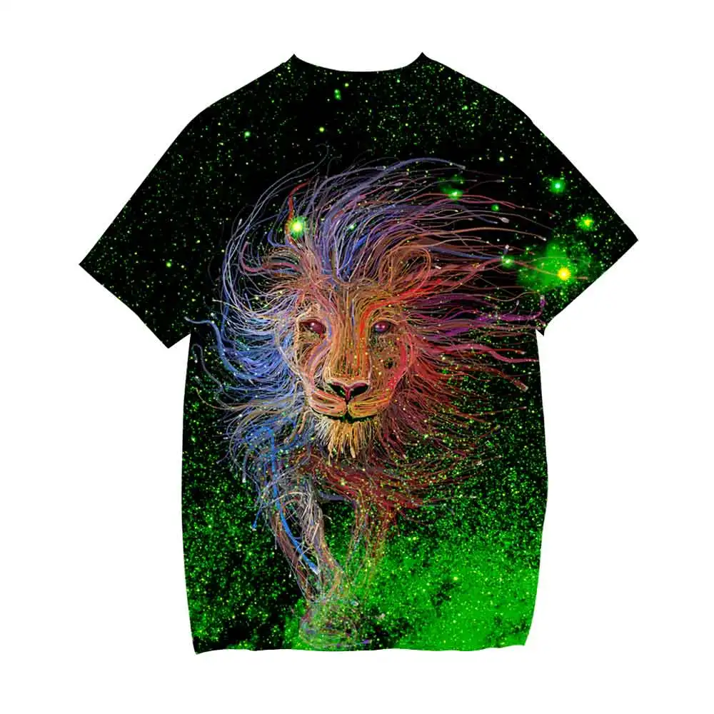 Летняя Детская 3D футболка с коротким рукавом для отдыха футболка с принтом животных льва тигра волка слона для мальчиков и девочек детская модная футболка