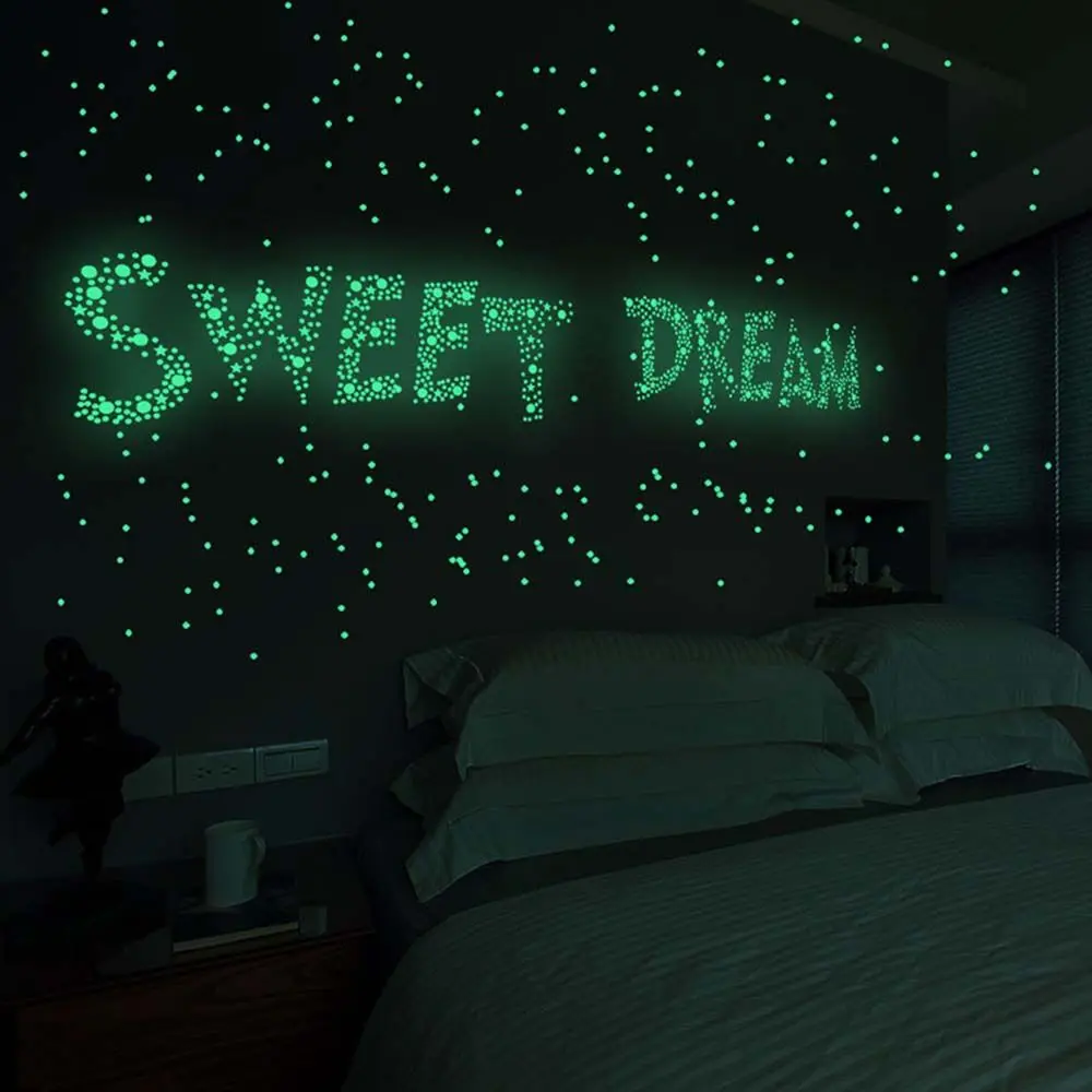 3D светящаяся наклейка, флуоресцентная наклейка в виде пузырьков, звезд, точек, настенное искусство, светящаяся в темноте Луна и Вселенная, сделай сам, украшение для спальни