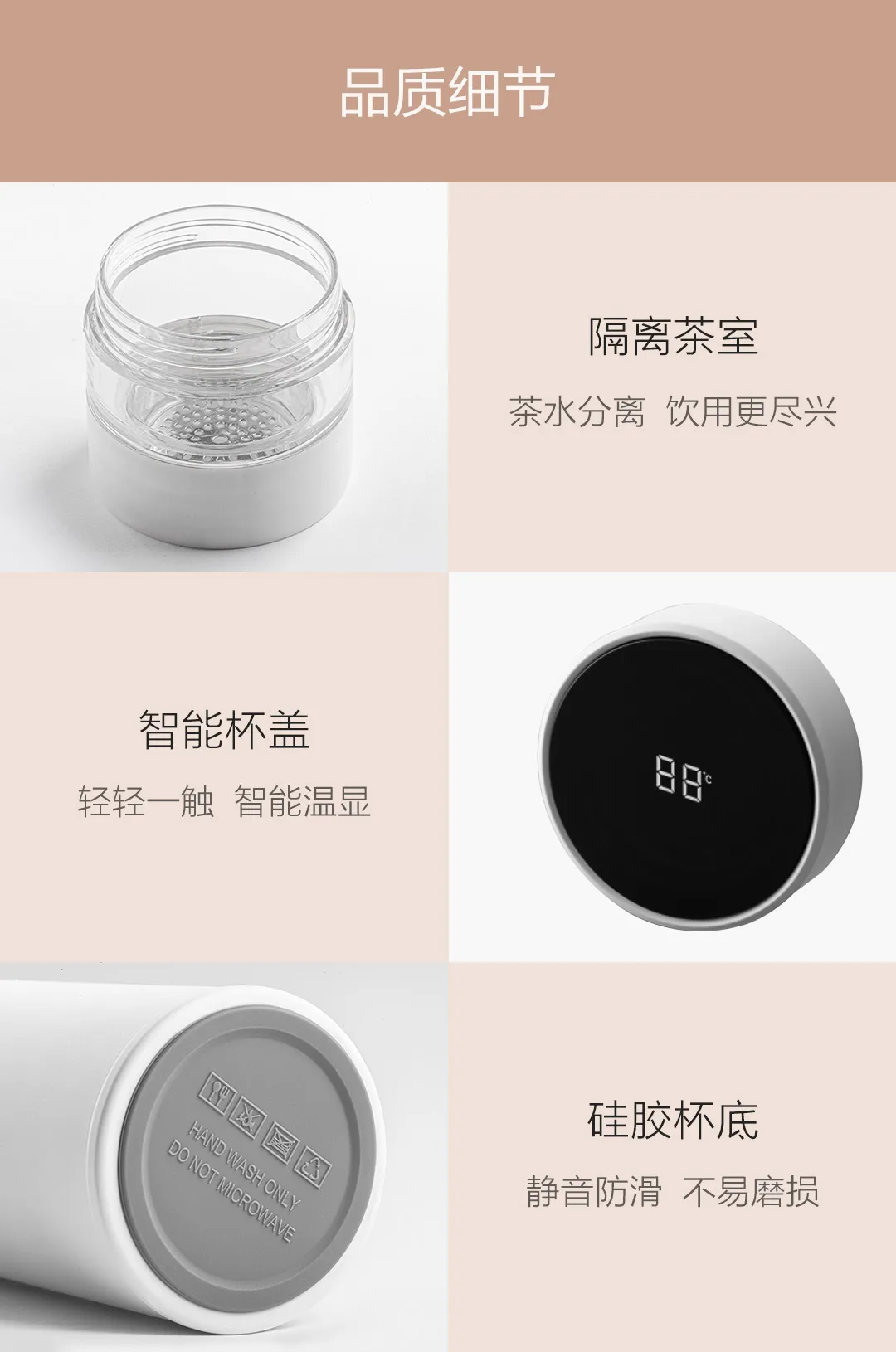 Умная чайная чашка Youpin Quange с дисплеем температуры, портативный термос, чашка, отдельный чайный склад для дома, путешествий, офиса Xiaomi
