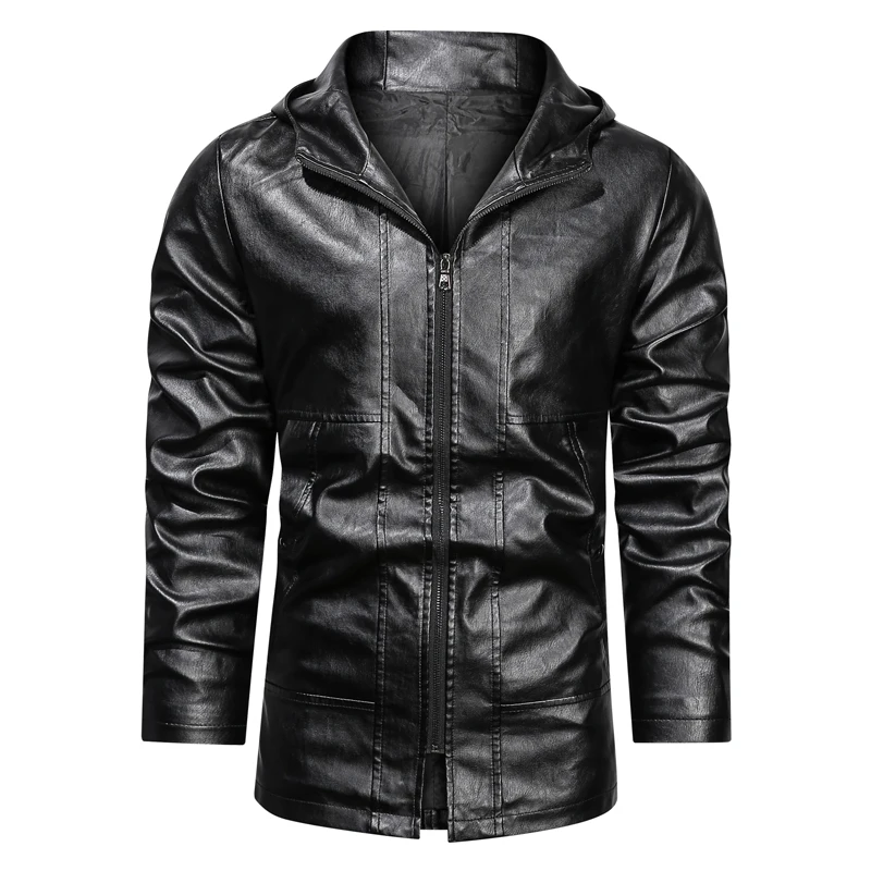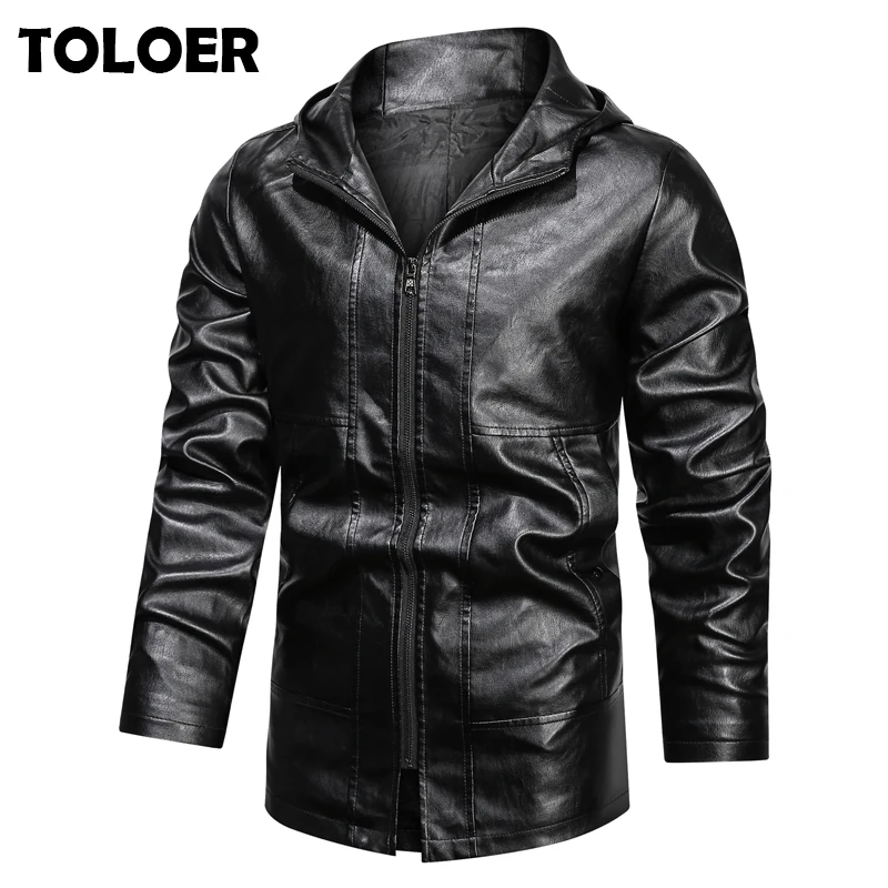 Мужские длинные кожаные куртки с капюшоном Толстовка куртка-бомбер ...