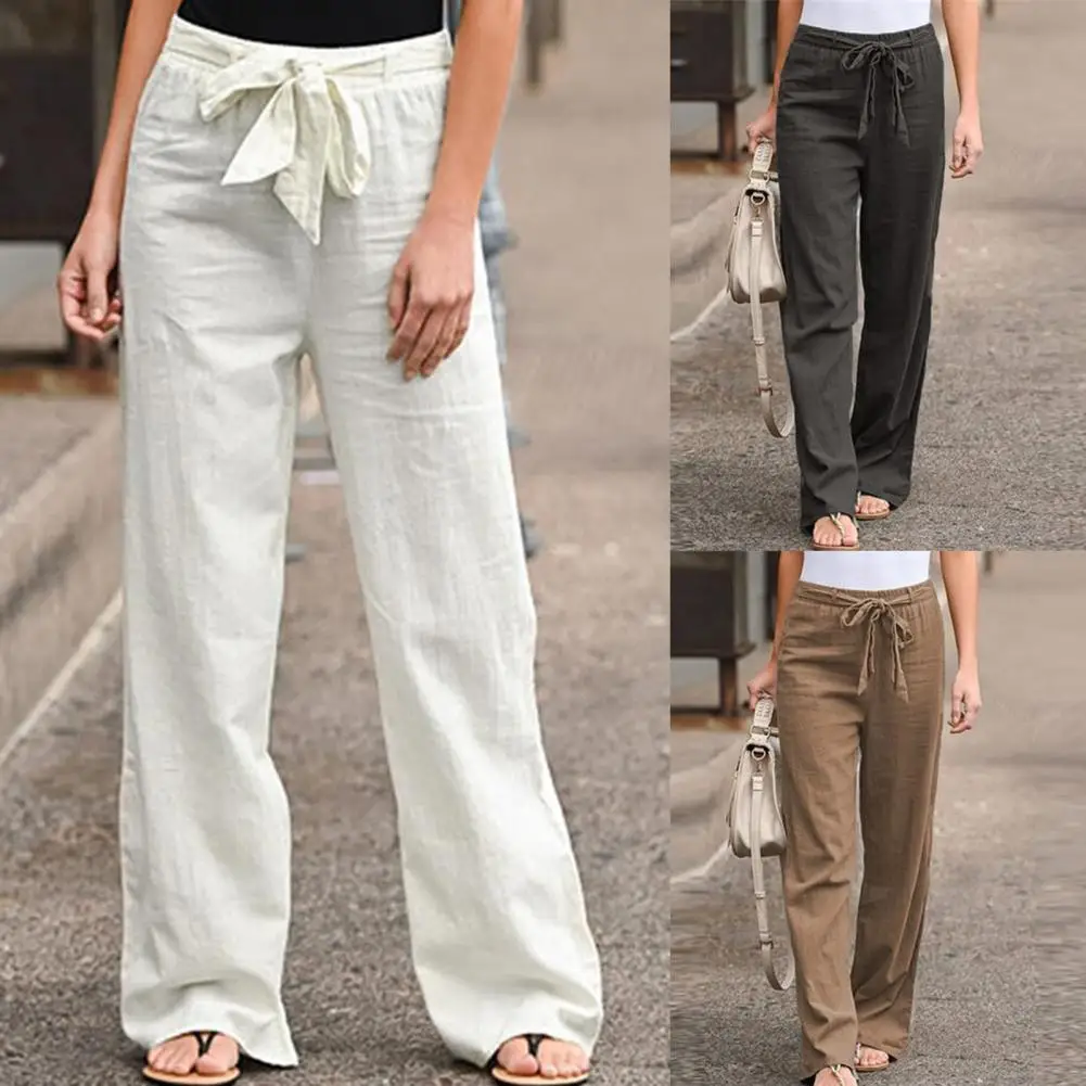Брюки Женские однотонные с поясом на резинке, повседневные Прямые длинные штаны до щиколотки, одежда для женщин