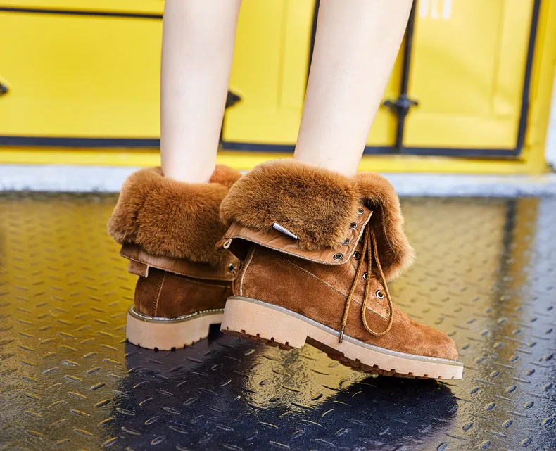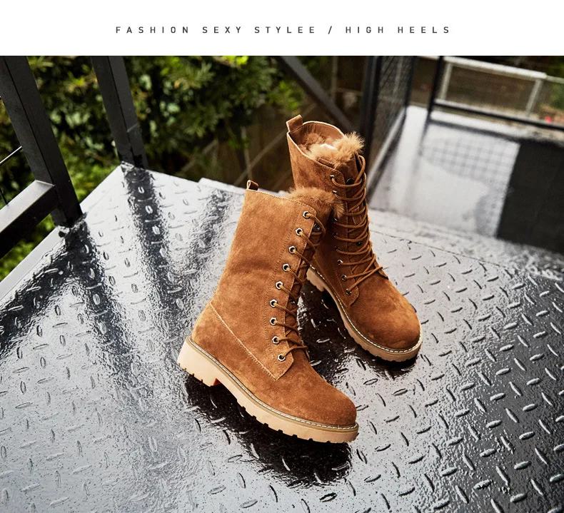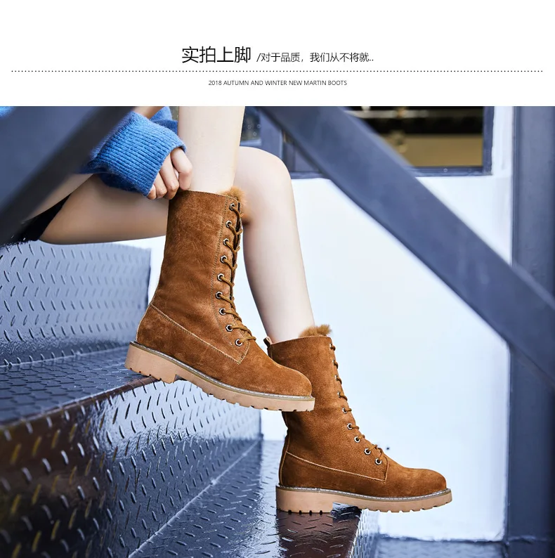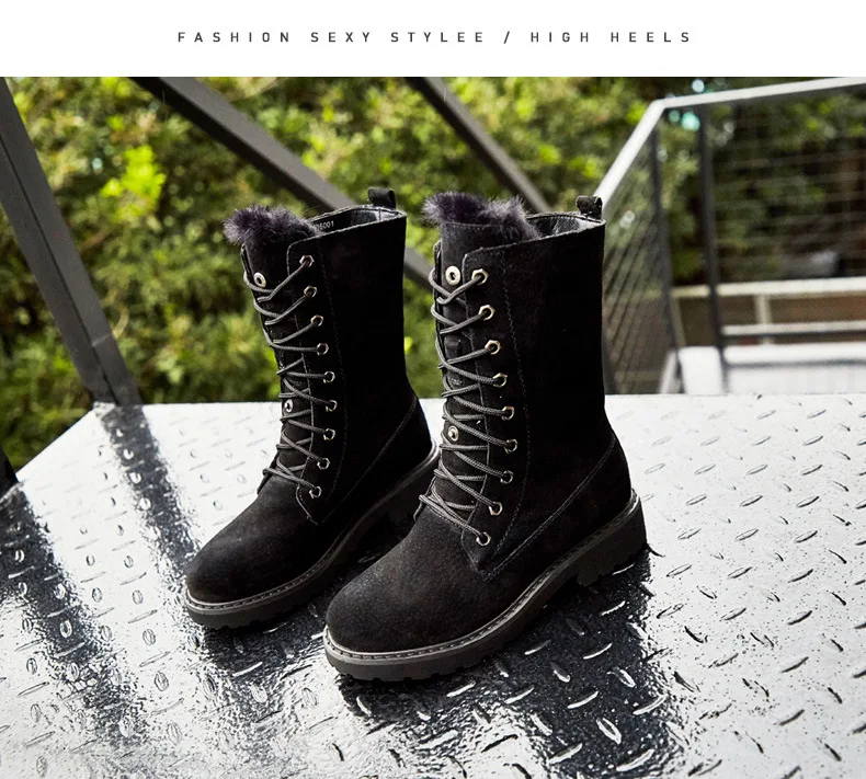 Женские зимние ботинки из натуральной кожи, толстые шерстяные теплы...