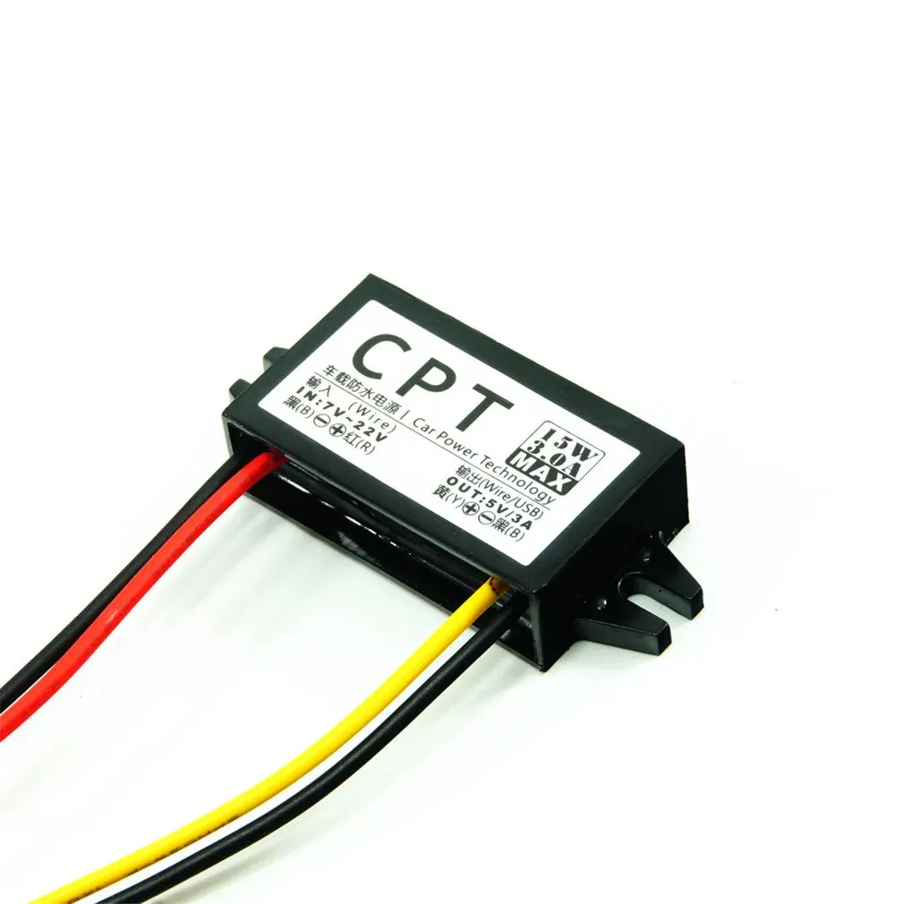 Особенности:100% новый и высокое качествоВсе эпоксидные герметичные контейнеры с водонепроницаемым корпусомЛегкий компактный, удобный в использовании и транспортировкеНеизолированный, синхронное выпрямлениеВысокая эффективность:>96%Надежное, низкое тепловыделениеС защитой от перегрузки/перегрузки по току/низкого напряжения/перегрева, стабильной работой.Автоматическое восстановление Свойства продукта:Входное напряжение: 12 В постоянного токаВыходное напряжение: 5 В постоянного токаВыходной ток: 3AВыходная мощность: 15 ВтМодель: CPT-UL-6 Характеристики:Входное напряжение: 12 В постоянного токаВыходное напряжение: 5 В постоянного токаВыходной ток: 3AВыходная мощность: 15 ВтЭффективность: >96%Рабочая температура:-40 °-80 °Размер (ДхШхВ): около 45*26*12 (мм)Длина кабеля: прибл. 330 ммЦвет: черный Посылка включает в себя:1 * Автомобильное зарядное устройство DC преобразователь модуль