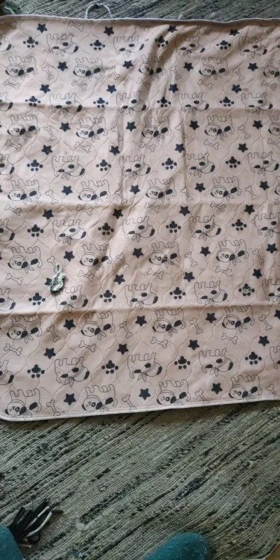 Очень хорошая пелёнка,верх из мягкой синтетической ткани,низ - что-то вроде целофана, прострочен качественно. Можно даже застелать диван от грязных лап, она очень приятная на ощупь. Ещё не стирала,но проблем,думаю,не будет с этим.