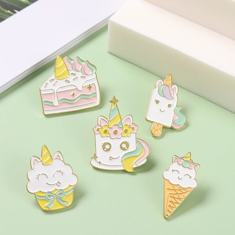 Эмалированные булавки для мороженого, индивидуальные броши, Милая Розовая лошадь, мультяшный десерт, лацкан, значок для сумки, шляпы, подарок для девочек и мальчиков