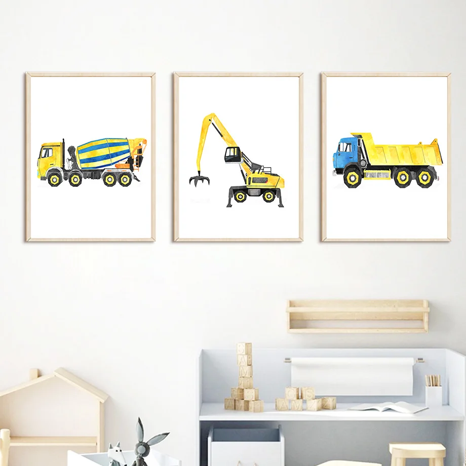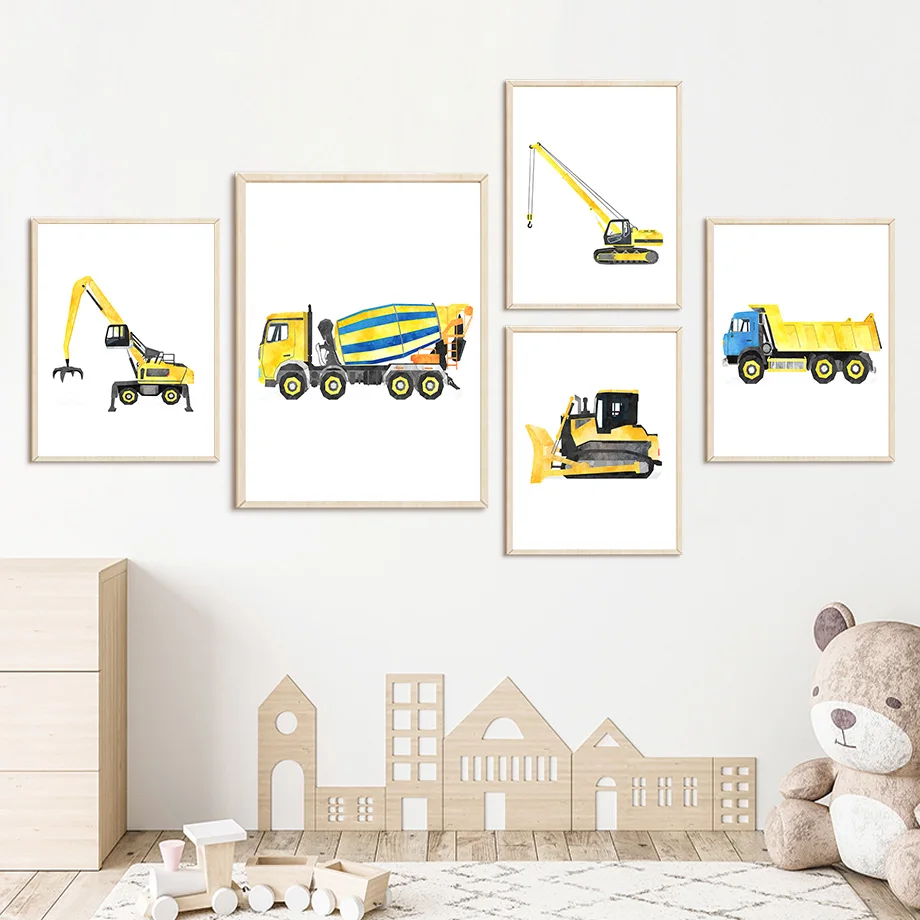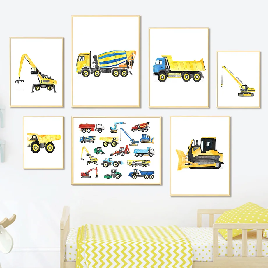 Строительные машины грузовик-Экскаватор Бульдозер детская стена искусство холст картина скандинавские плакаты и принты декор картины детская комната