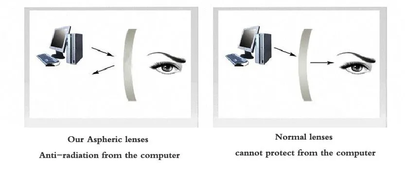What's aspheric lenses? what's Anti-radiation green film lenses? What's the difference of 1.56,1.61 and 1.67?