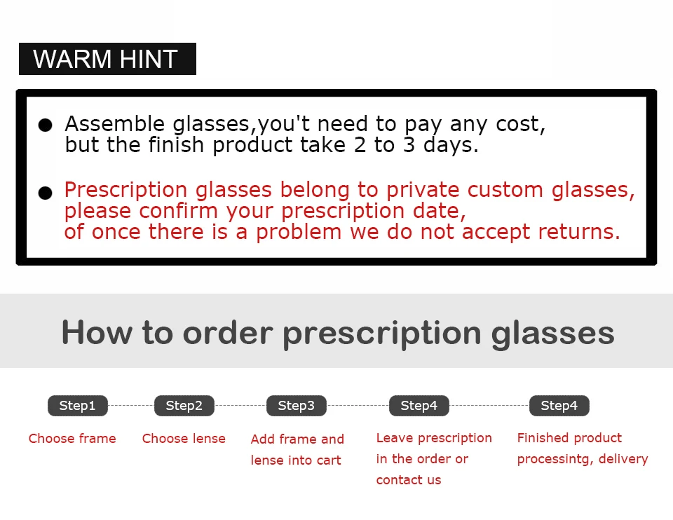 we will make the glasses according to your prescription and send you the ready-made glasses