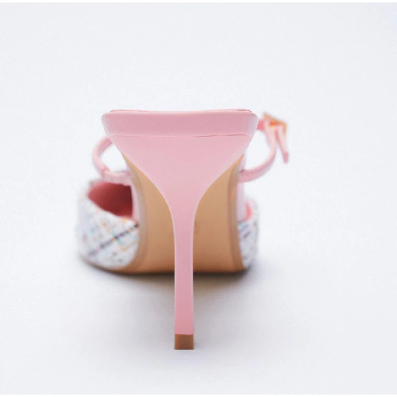 Новые женские туфли на тонком высоком каблуке, новые модные сандалии с острым носком и пряжкой, Женская Изысканная повседневная обувь в клетку
