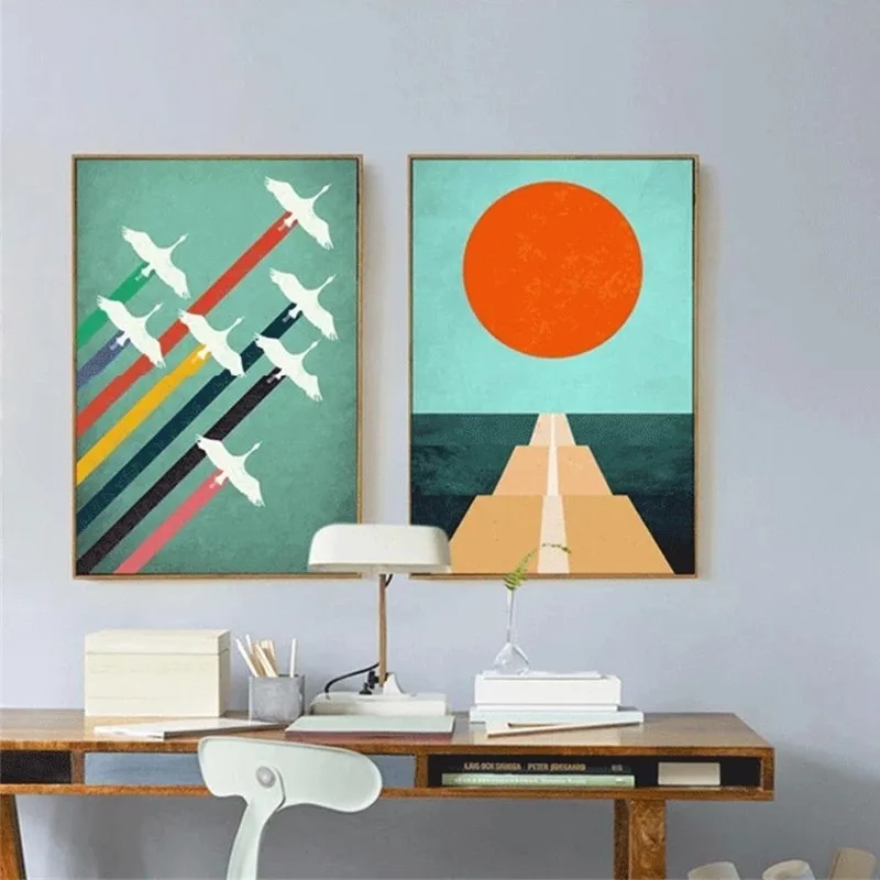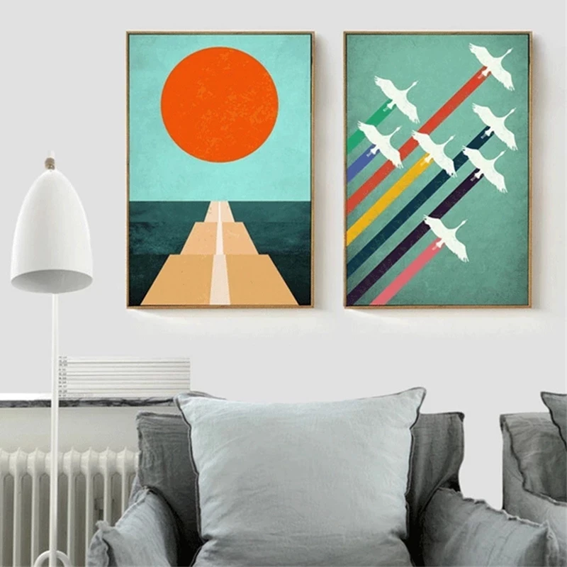 Винтажные абстрактные настенные картины с закатом, морем и небом, красочная дорога, без рамки, картина маслом, холст, живопись для домашнего декора