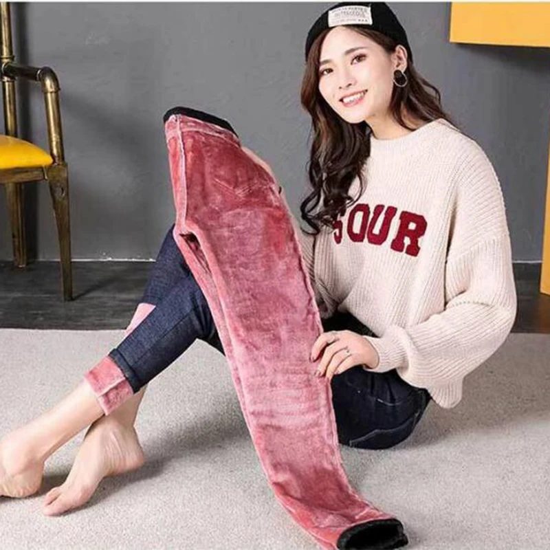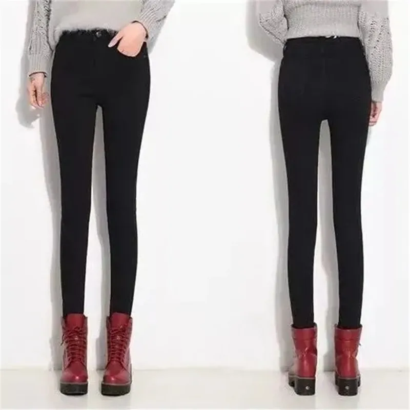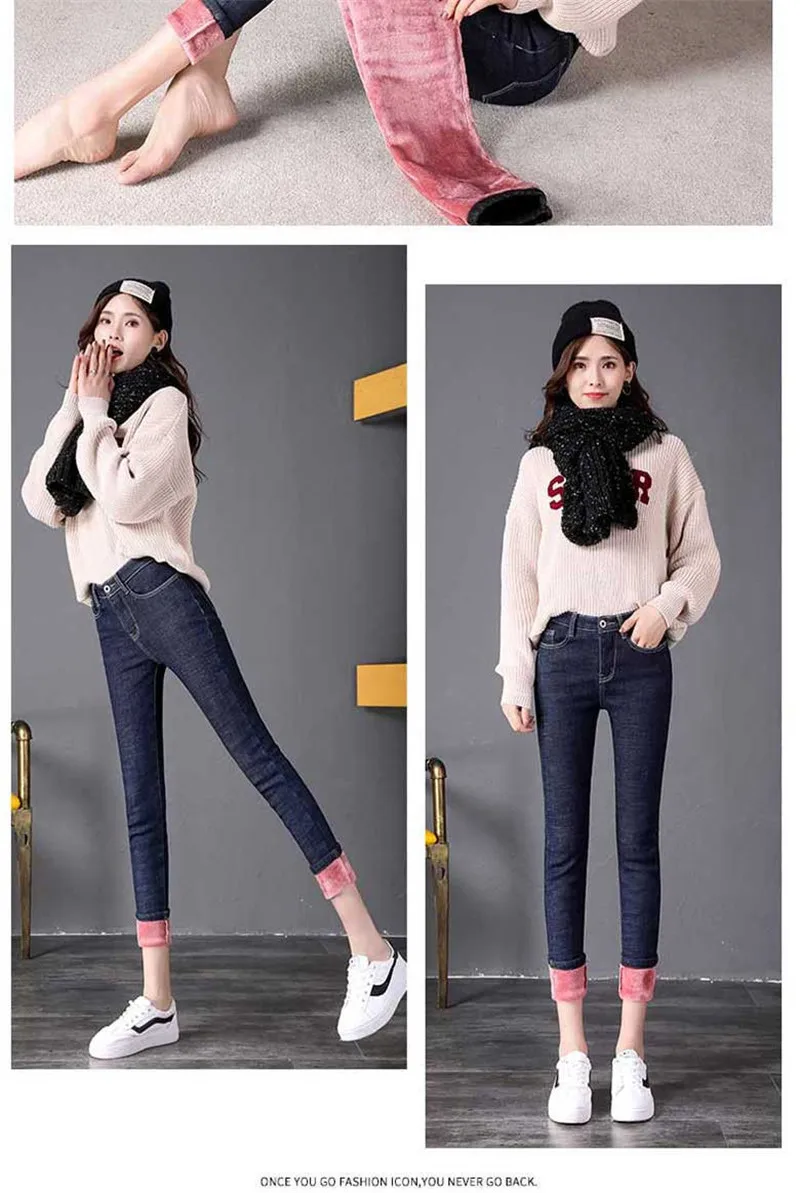 Женские теплые джинсы с высокой талией, джинсовые брюки с флисовой подкладкой, новинка 2021, зимние эластичные брюки, женские повседневные облегающие джинсовые брюки-карандаш