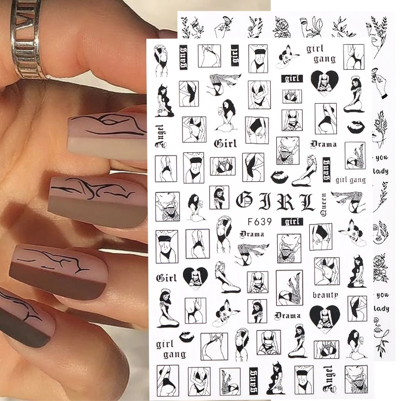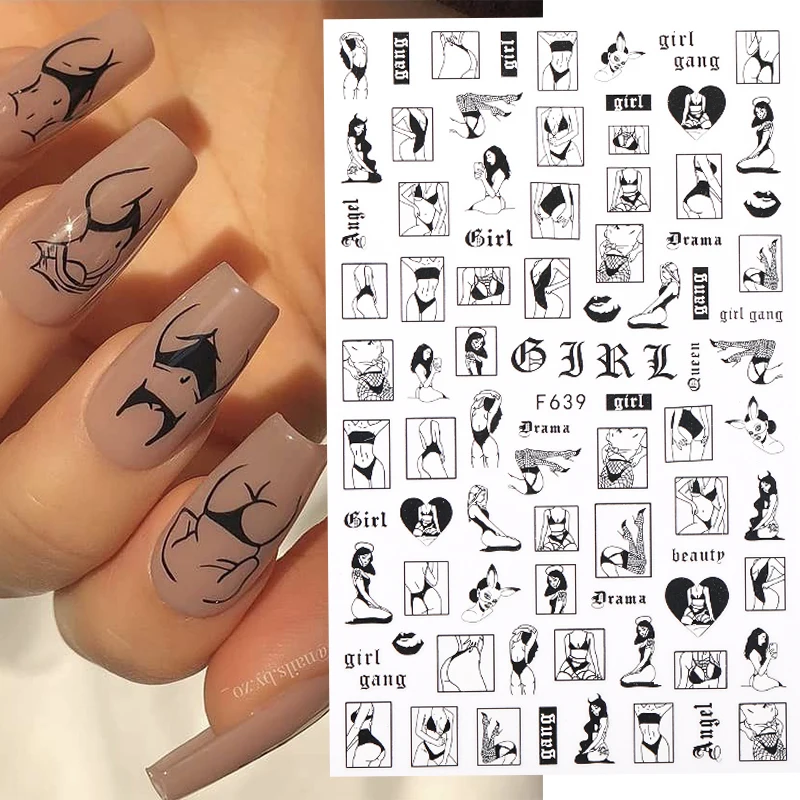 1 шт., 3D наклейки для ногтей с изображением соблазнительной леди