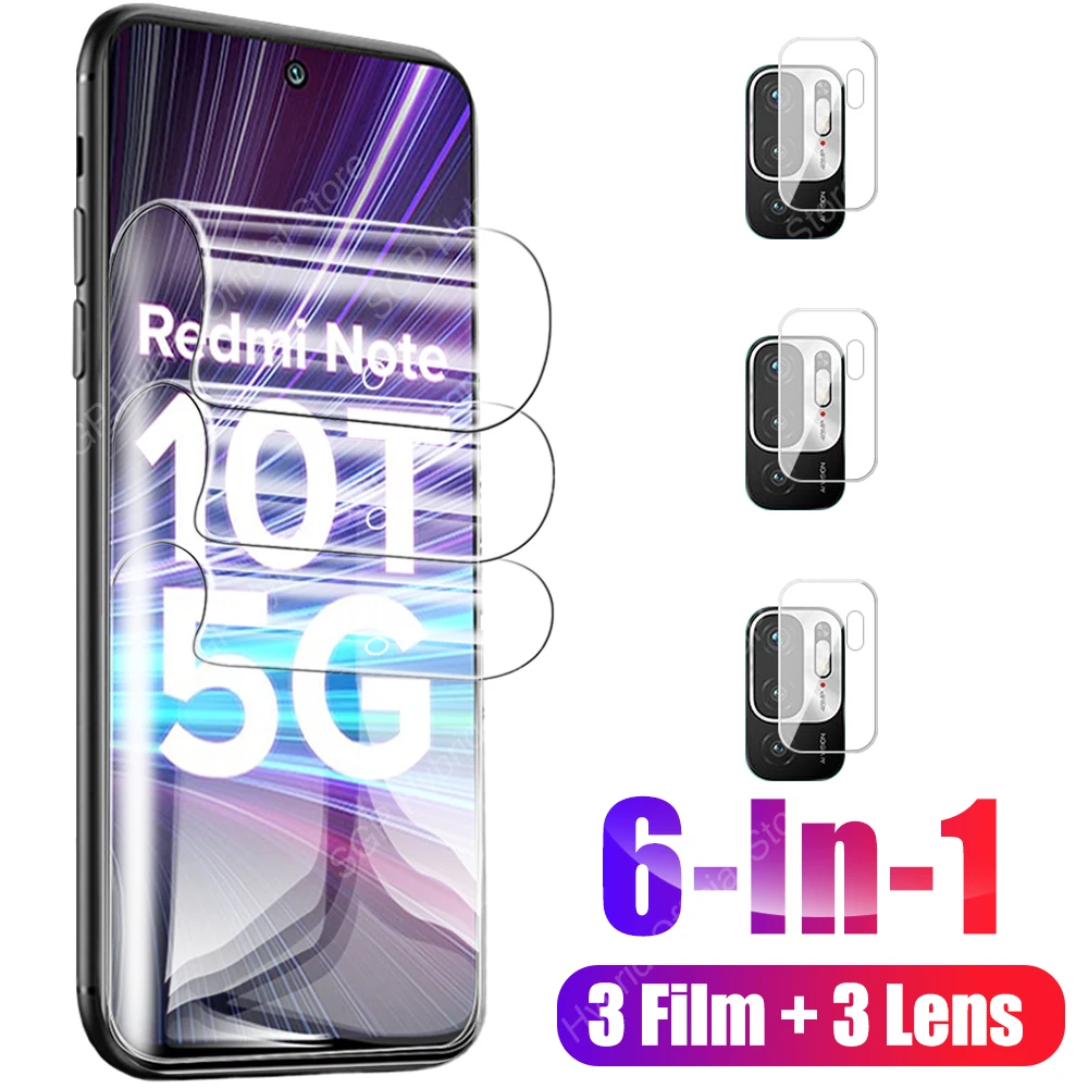 Защитная Гидрогелевая пленка на весь экран 6 в 1 для Xiaomi Redmi Note 10 T 5G Note10 Pro 10 T 10S 10pro Защитная пленка для объектива камеры