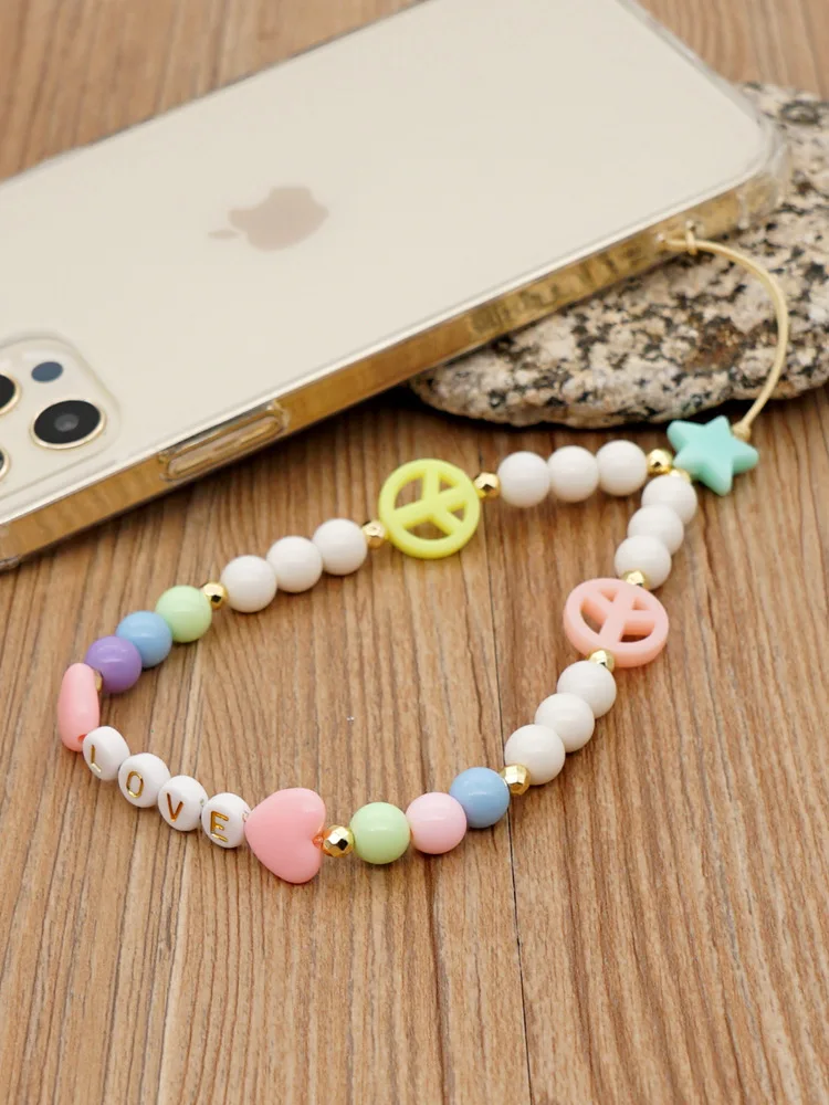 Очаровательный браслет для мобильного телефона с бусинами, ремешок для мобильного телефона, шнур для телефона, 2021, знак мира, ювелирные изделия для женщин