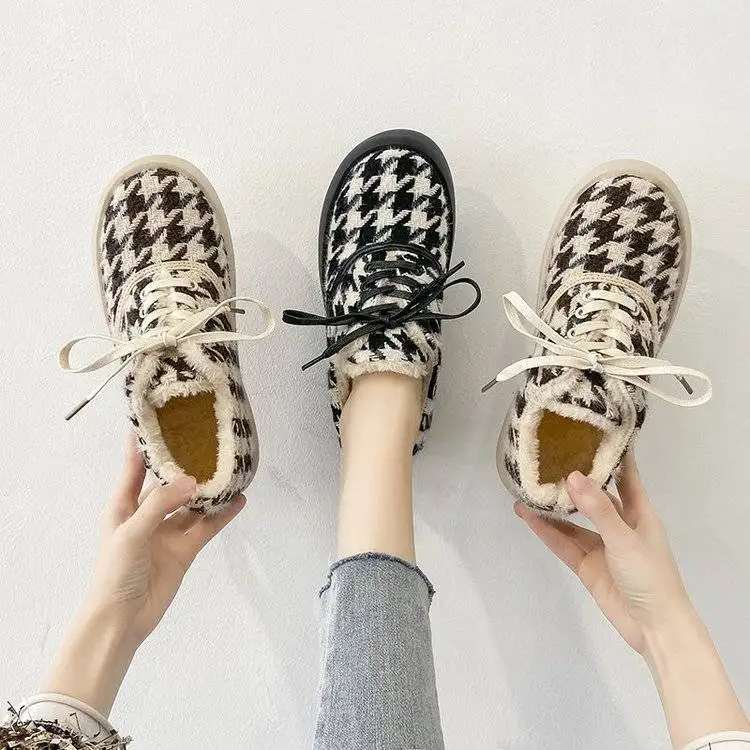 2021 плюшевые туфли на толстой подошве, женские зимние туфли с рисунком гусиные лапки, лоферы для ленивых, обувь с большим носком из хлопка
