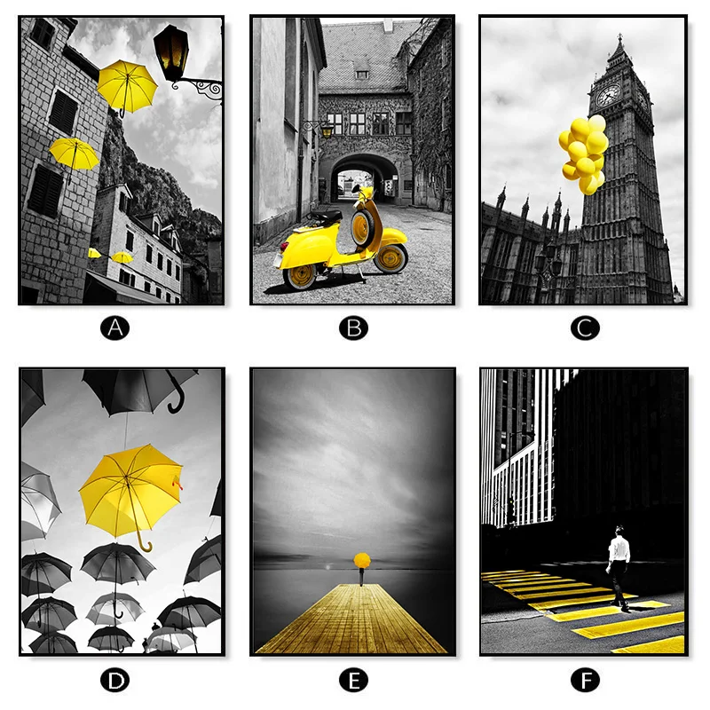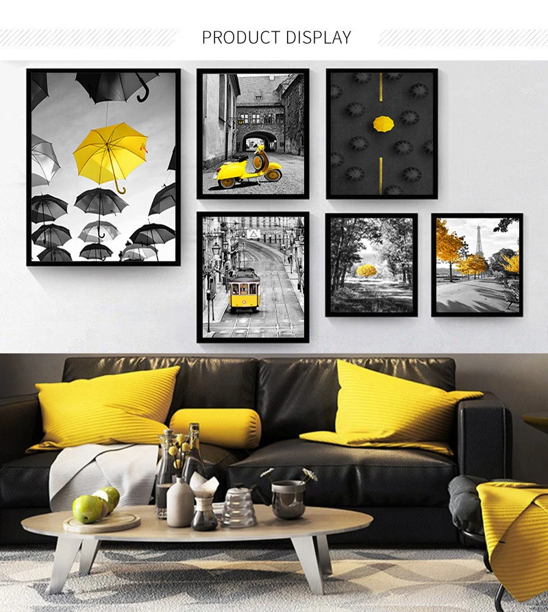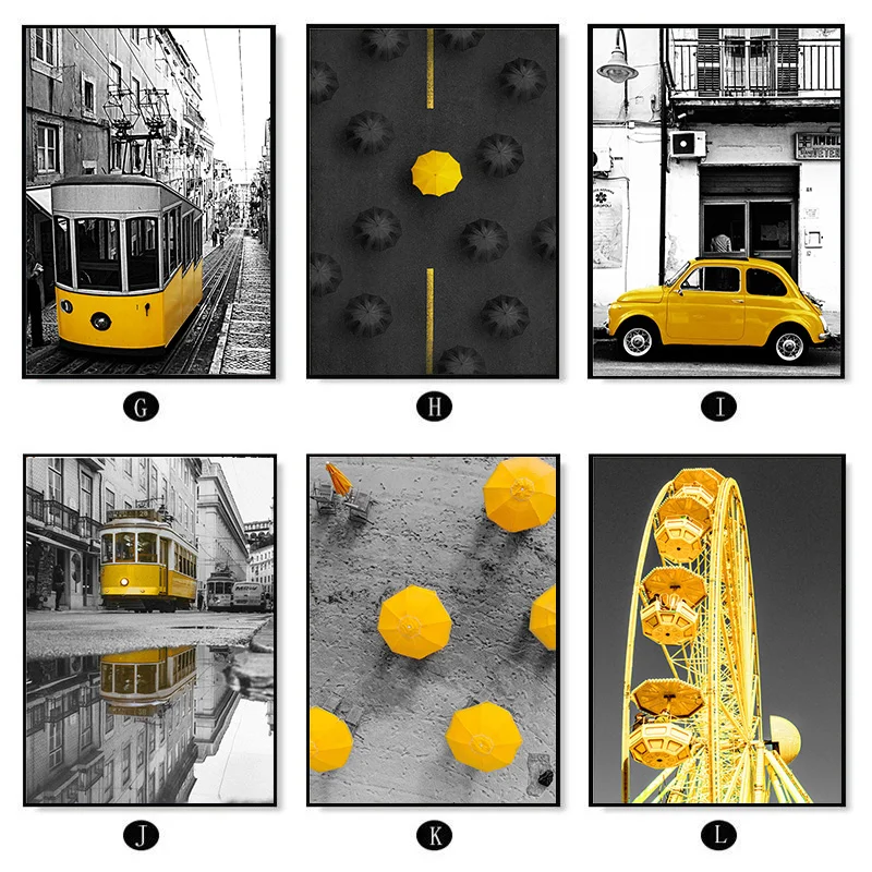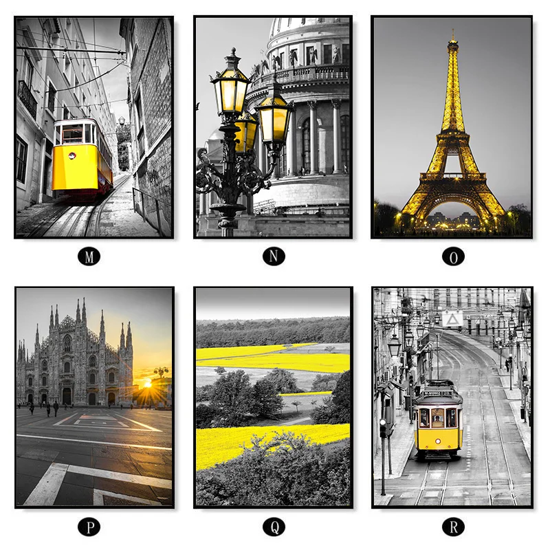 Скандинавский городской пейзаж, холст, картина, желтый настенный ху...