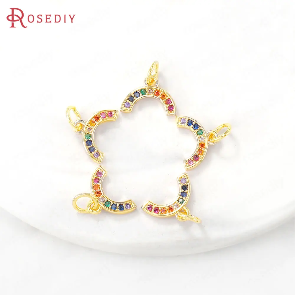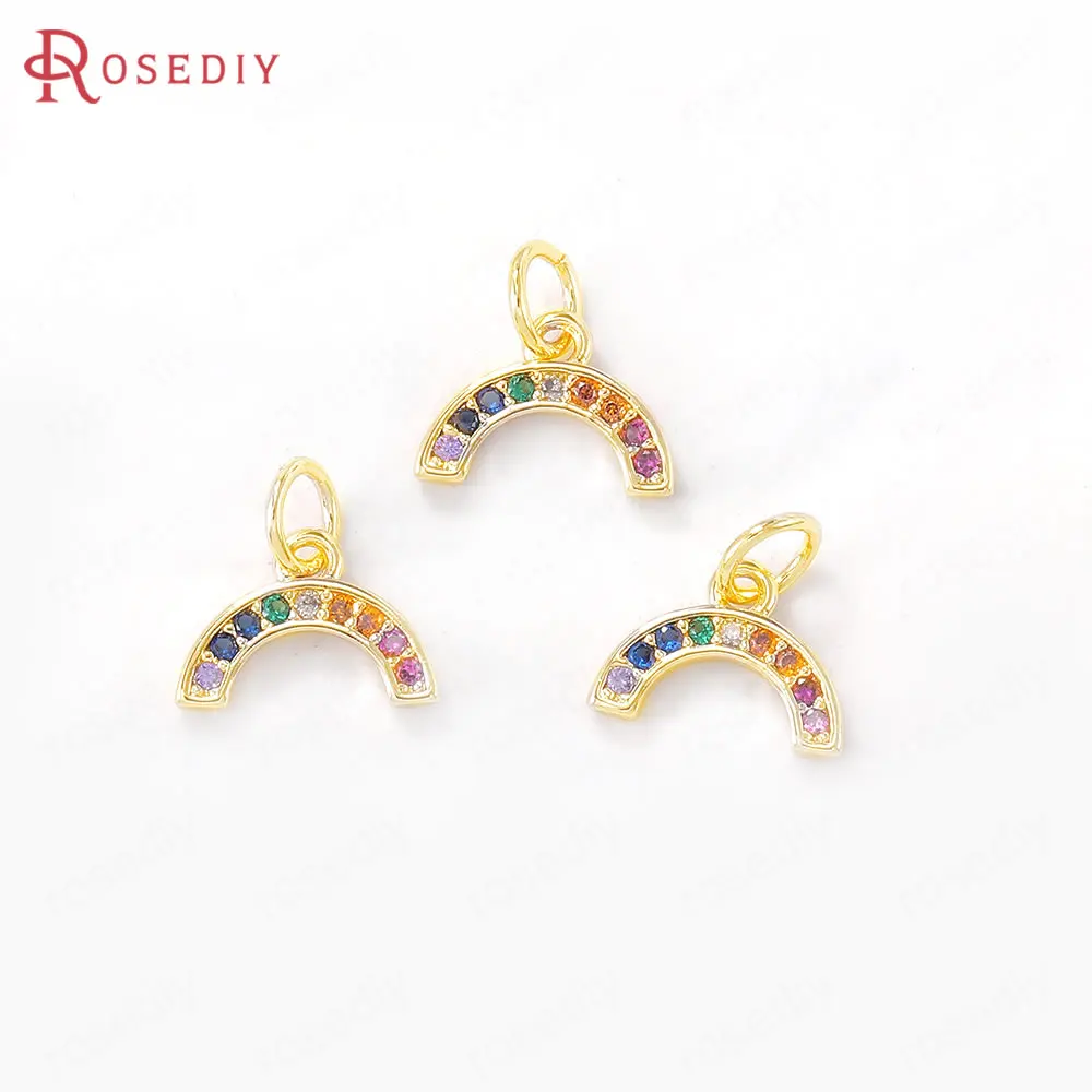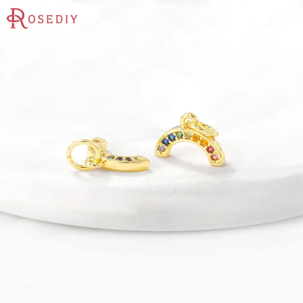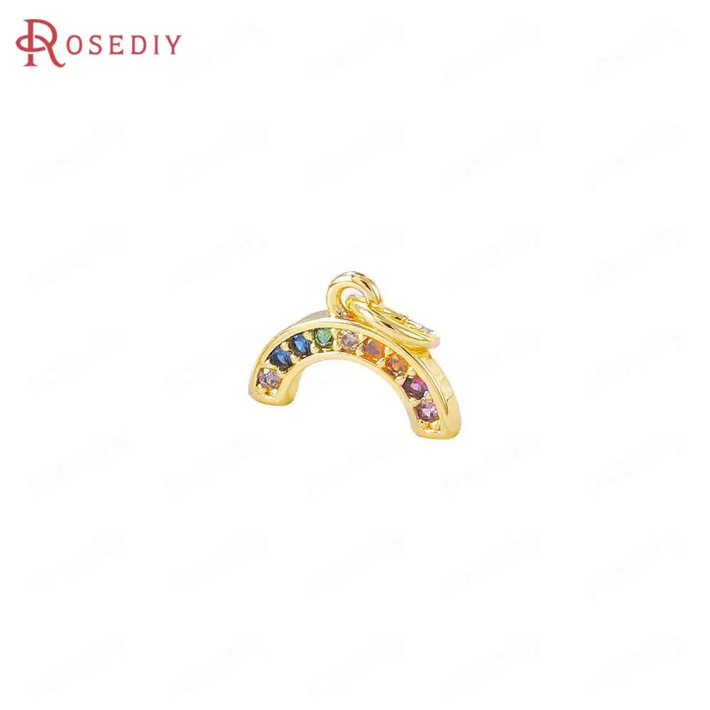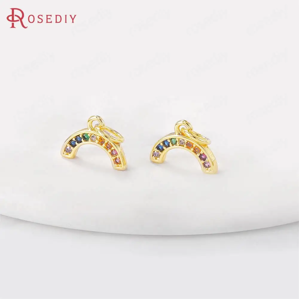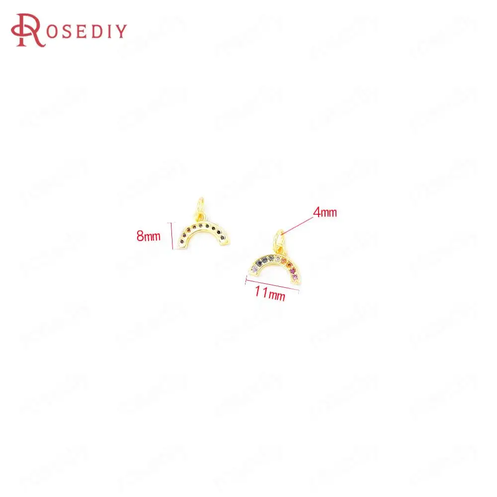 Латунные подвески и циркониевые радужные подвески, 4 шт., 11 х8 мм, отверстие 4 мм, цвет 24-каратного золота, фурнитура сделай сам для изготовления ювелирных изделий