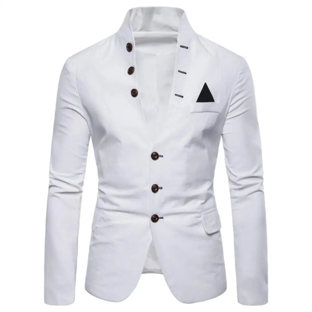 Пиджак мужской, с воротником-стойкой и длинными рукавами, с 3 пуговицами и карманами, весна-осень, 2021
