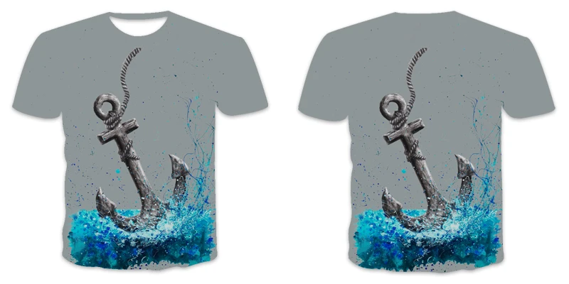 Футболка мужская с принтом якоря, Модный повседневный топ с коротким рукавом, с круглым вырезом, в морском стиле, 3D, летняя одежда