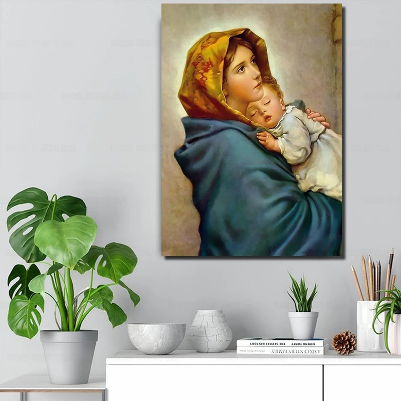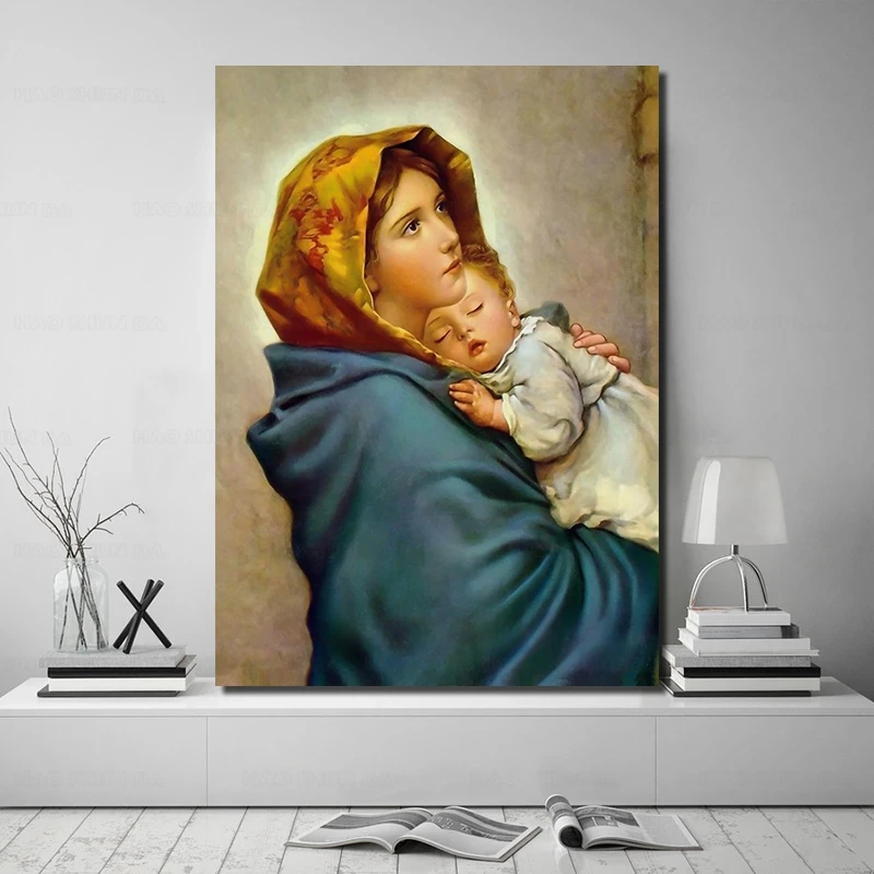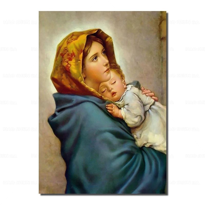 Дева Мария и ребенок, фотография дневной Мадонны на улице, изображение счастливой мамы, настенное искусство, подарок для детской комнаты