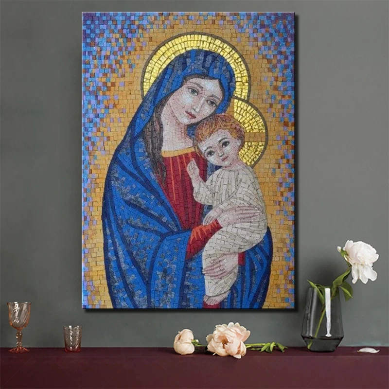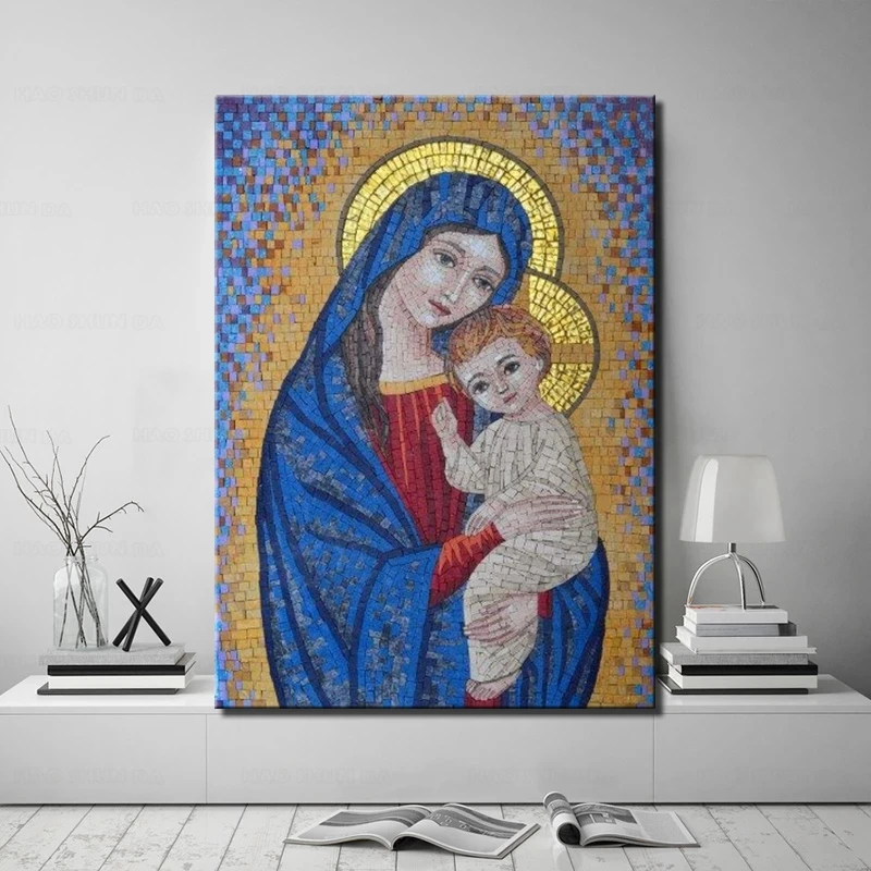 Дева Мария и ребенок Иисус глянцевый Постер фото леди Святой Бог вера фотография для комнаты дети