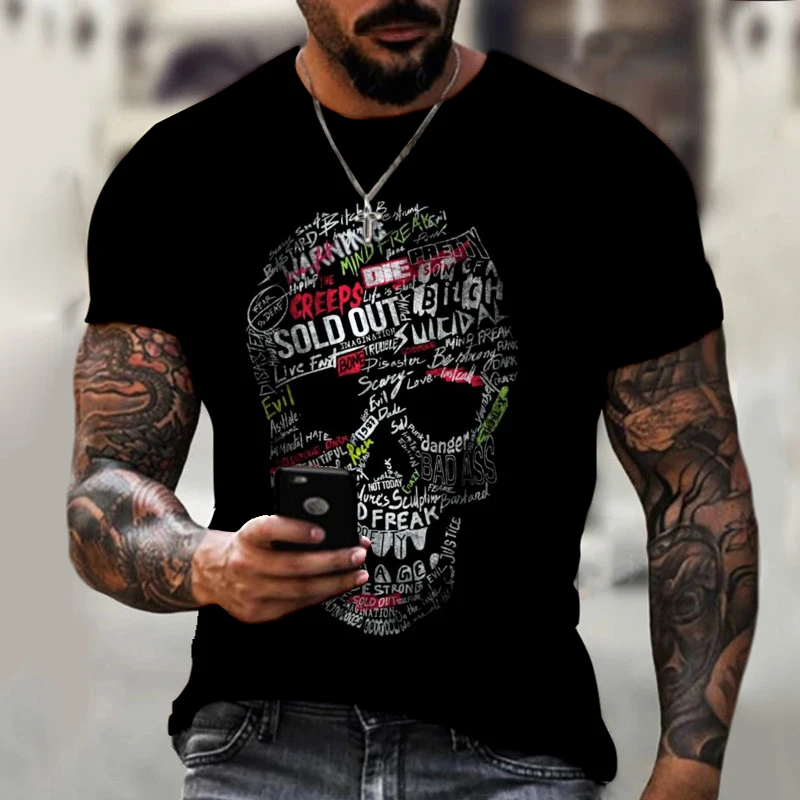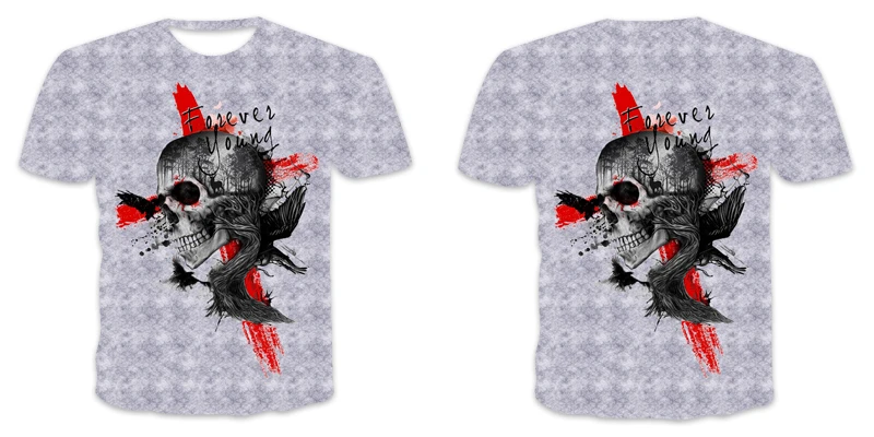Футболка мужская с 3D-принтом черепа, Модный повседневный топ с круглым вырезом и коротким рукавом, одежда для мальчиков, уличная одежда, лето