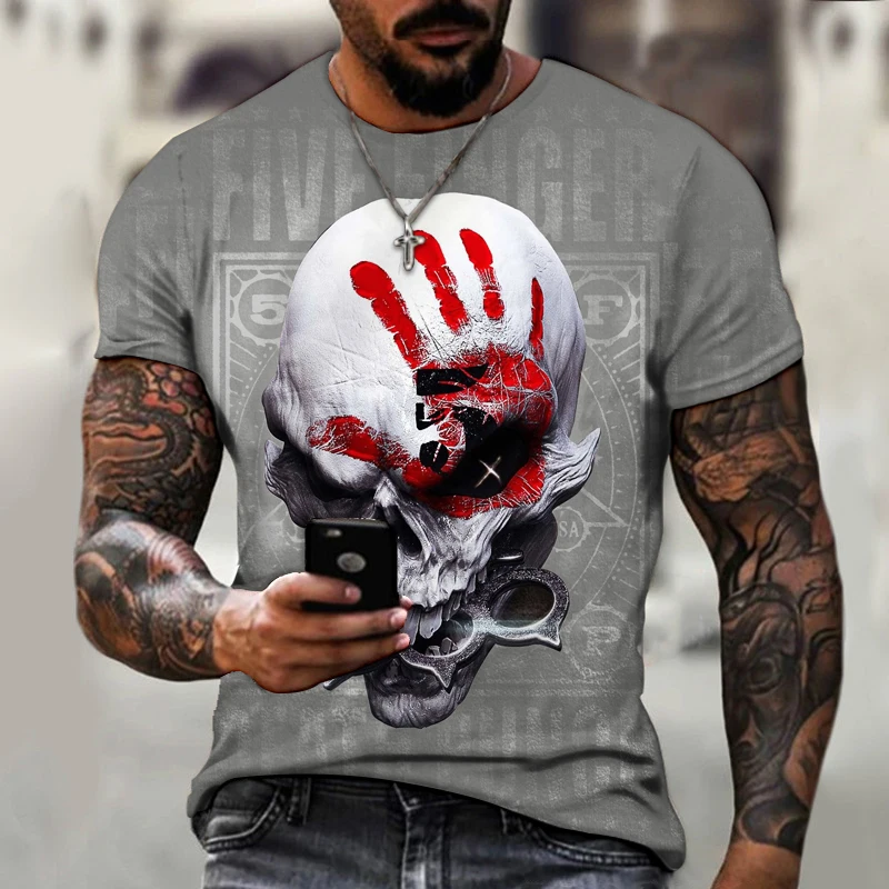 Футболка мужская с 3D-принтом черепа, модная рубашка в стиле панк, ...