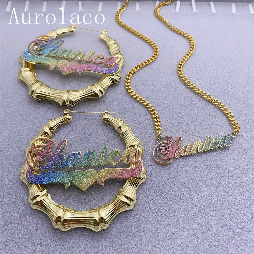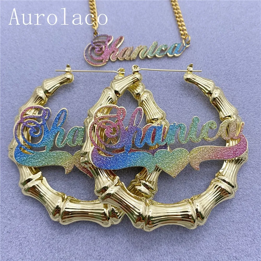 DOREMI Цвет Фул Пользовательские Бамбук Имя Серьги блеск Цвет стике...
