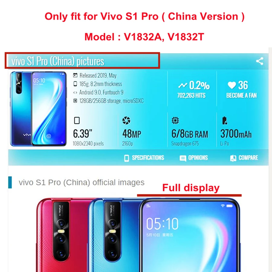 ЖК-дисплей AMOLED x27 6,39 дюйма для Vivo V15 Pro, сенсорный экран с дигитайзером в сборе для Vivo X27 S1 Pro, китайская версия V1832A