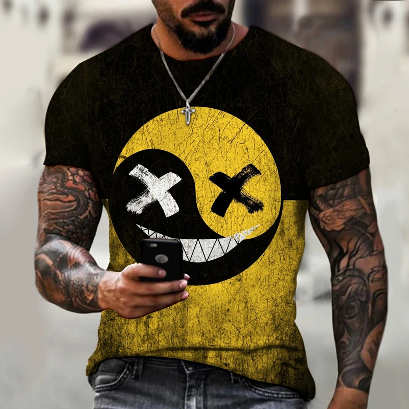 Новые повседневные мужские футболки, футболка с 3D смайликом, летние модные топы, простые повседневные уличные футболки с коротким рукавом и круглым вырезом
