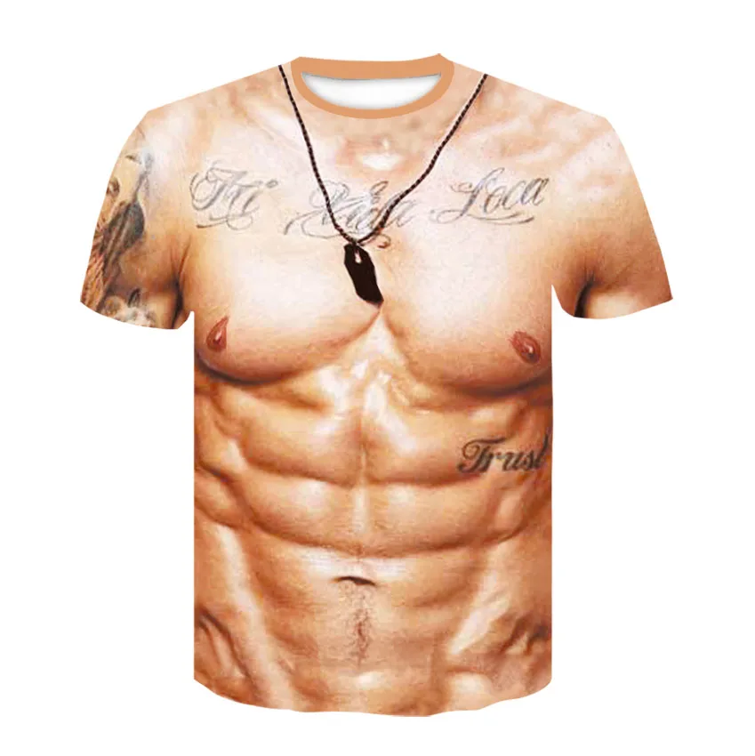 Летние мужские фальшивые мускулы футболки с 3D принтом татуировок с...