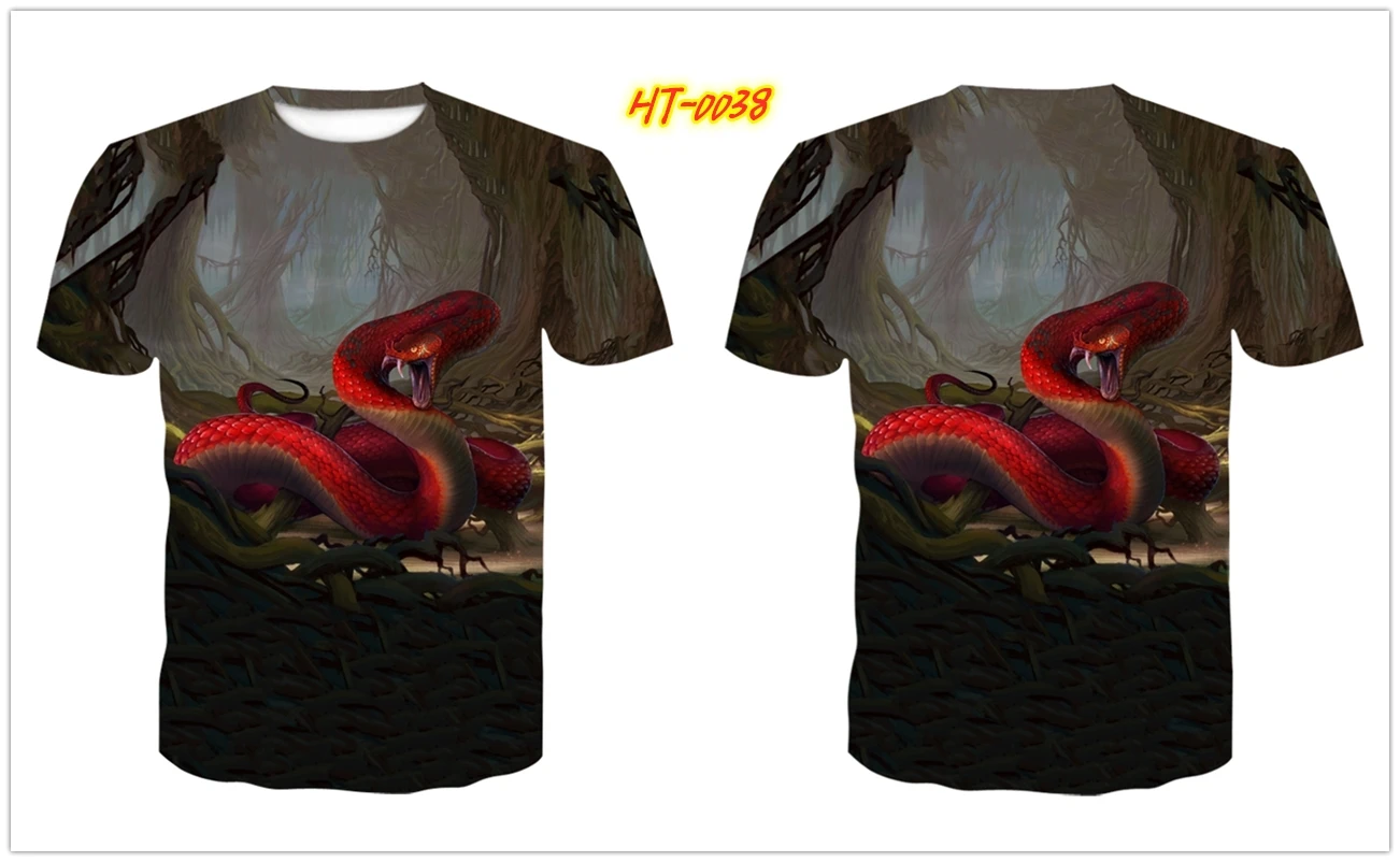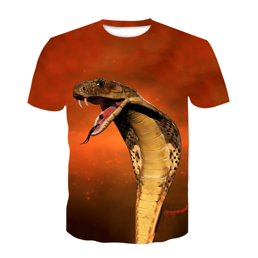 Футболка мужская с 3D-принтом змеи, короткий рукав, круглый вырез, модная рубашка, уличная одежда, на лето