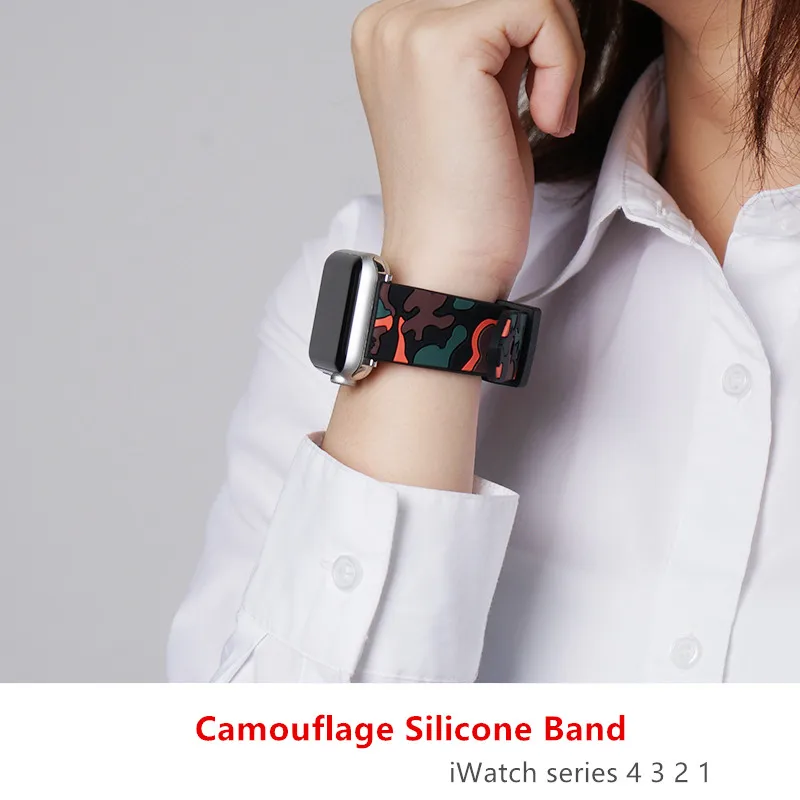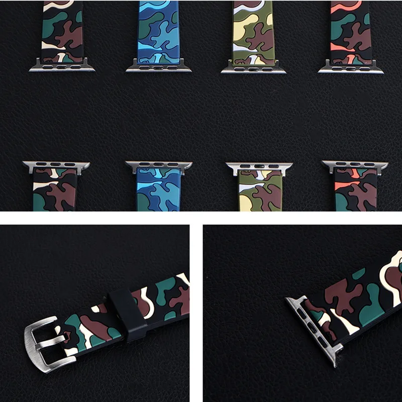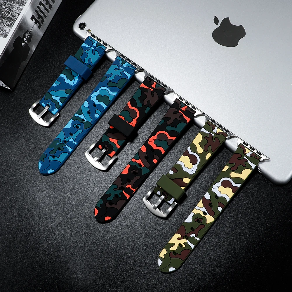 Ремешок Камуфляжный для Apple watch band 44 мм 40 мм 42 мм 38 мм, силиконовый спортивный браслет для наручных часов iwatch Series 5 4 3 6 se 7 45 мм 41 мм