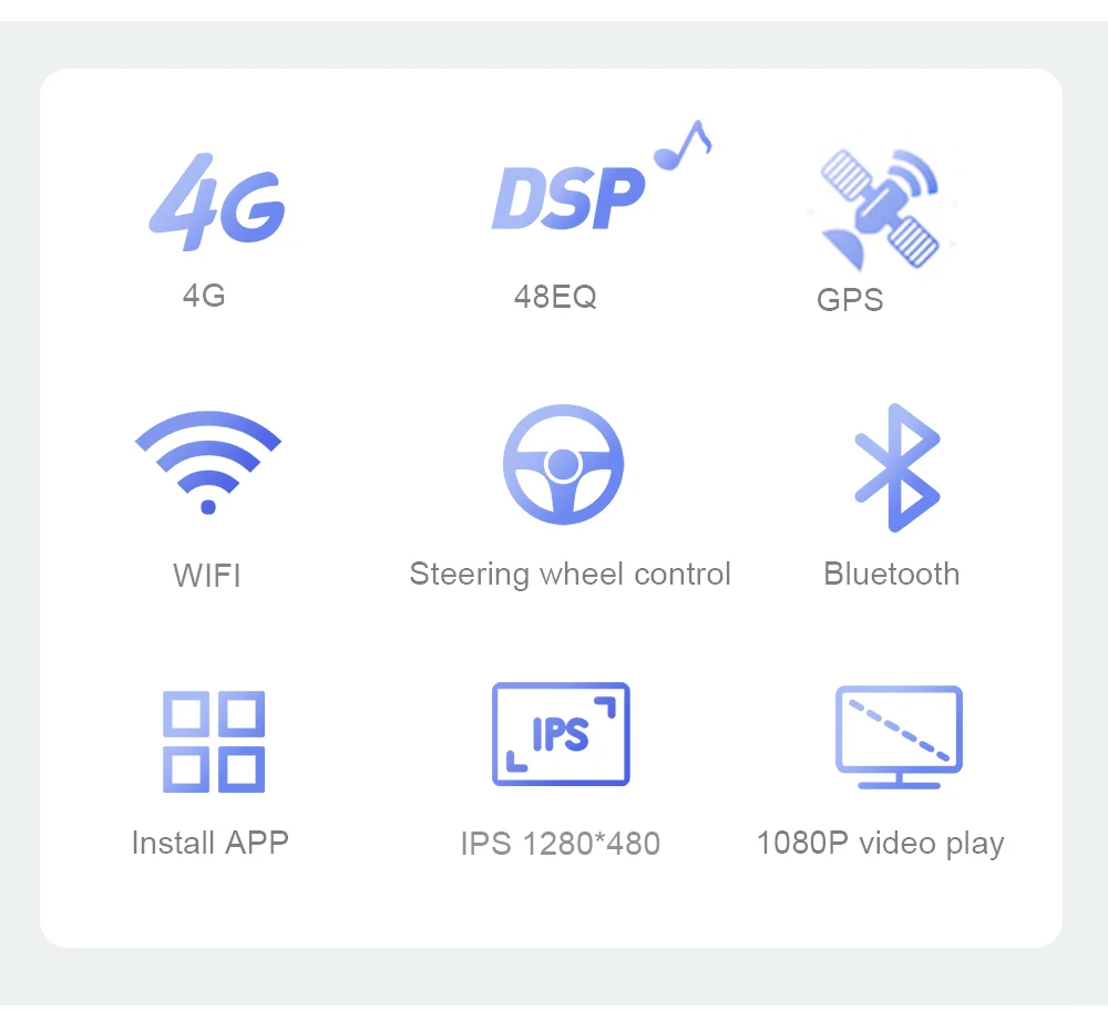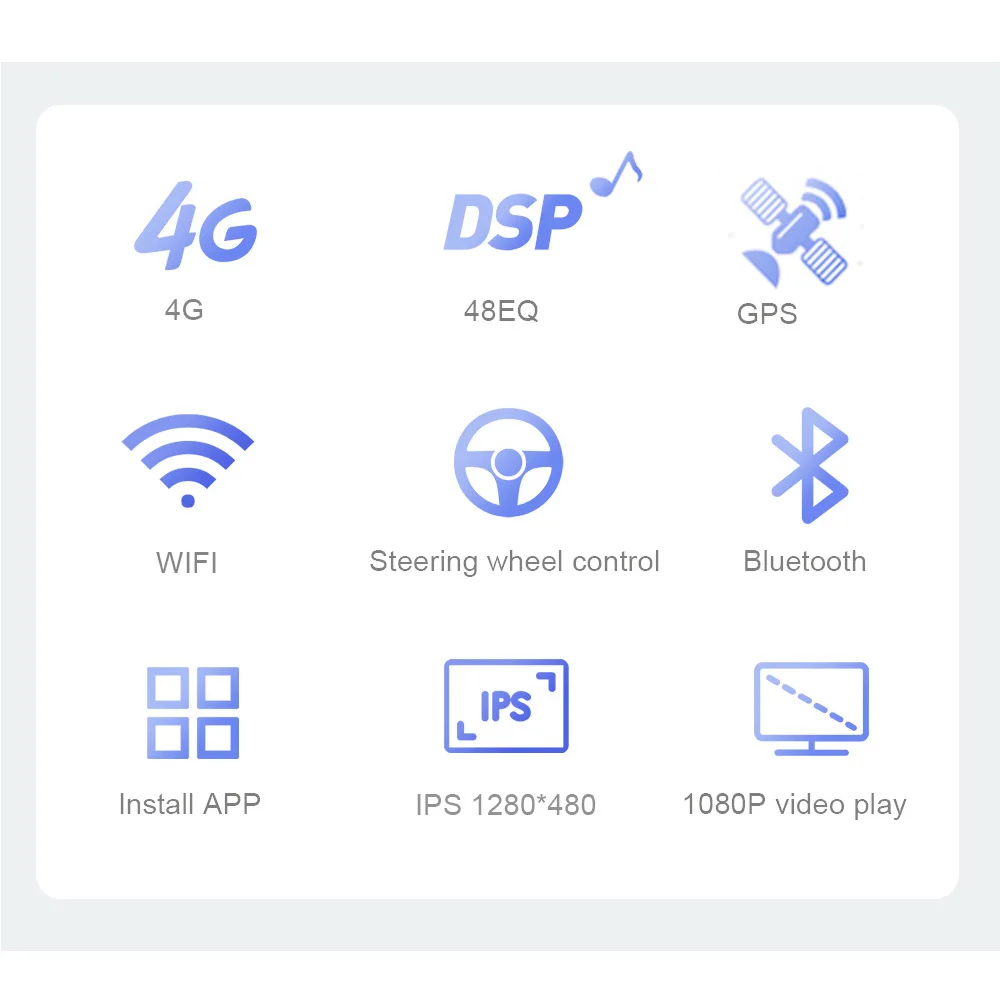 Поддержка кнопок управления рулевым колесом/кнопок ручки джойстика, Bluetooth для телефонных звонков/музыки и Bluetooth OBD2, встроенный WIFI/4G сеть, навигация, загрузка и установка приложения, которое вам нравится.