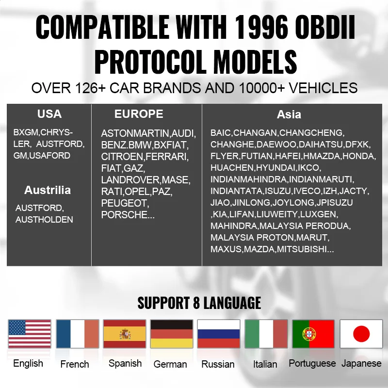 Хотите ли вы использовать свой родной язык для диагностики? Не волнуйтесь, MUCAR VO6 предоставляет несколько языков для переключения, английский, французский, испанский, немецкий, русский, итальянский, португальский, японский, польский