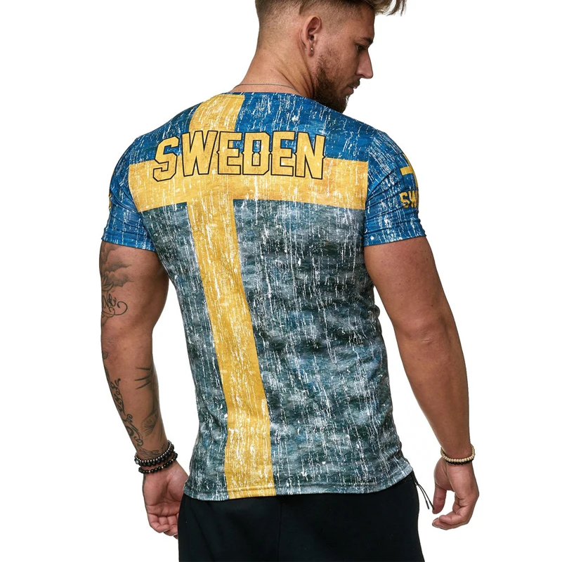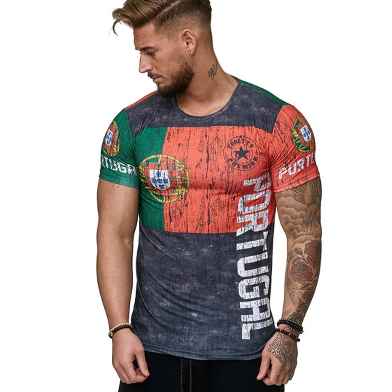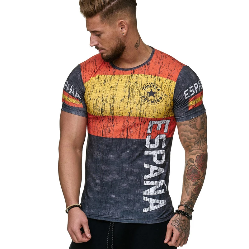 Мужская дышащая футболка с коротким рукавом, круглым вырезом и 3D-п...