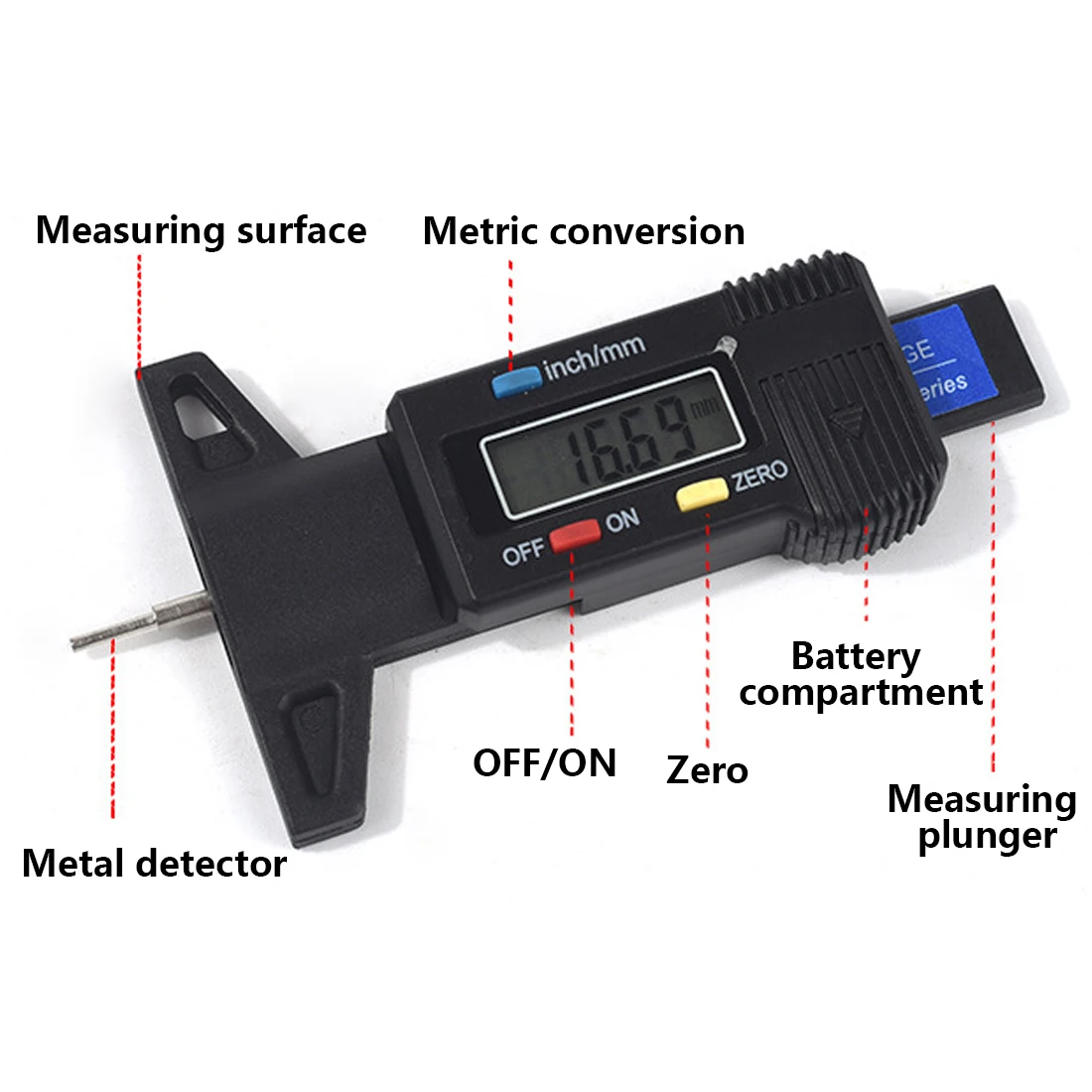Толщиномер глубины протектора 0-25,4 мм с ЖК-дисплеем, цифровой изм...