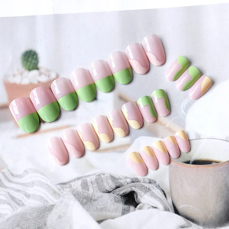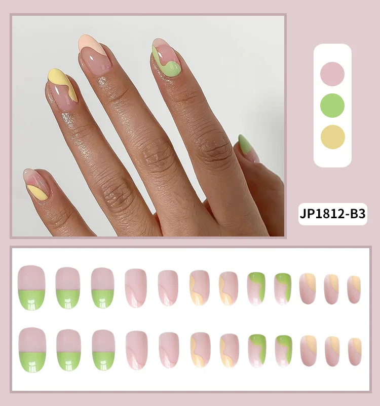 Круглые короткие накладные ногти 24 шт. полное покрытие Глянцевая маникюрная палочка на желе накладные ногти для маникюрного салона Искусство DIY THRK889