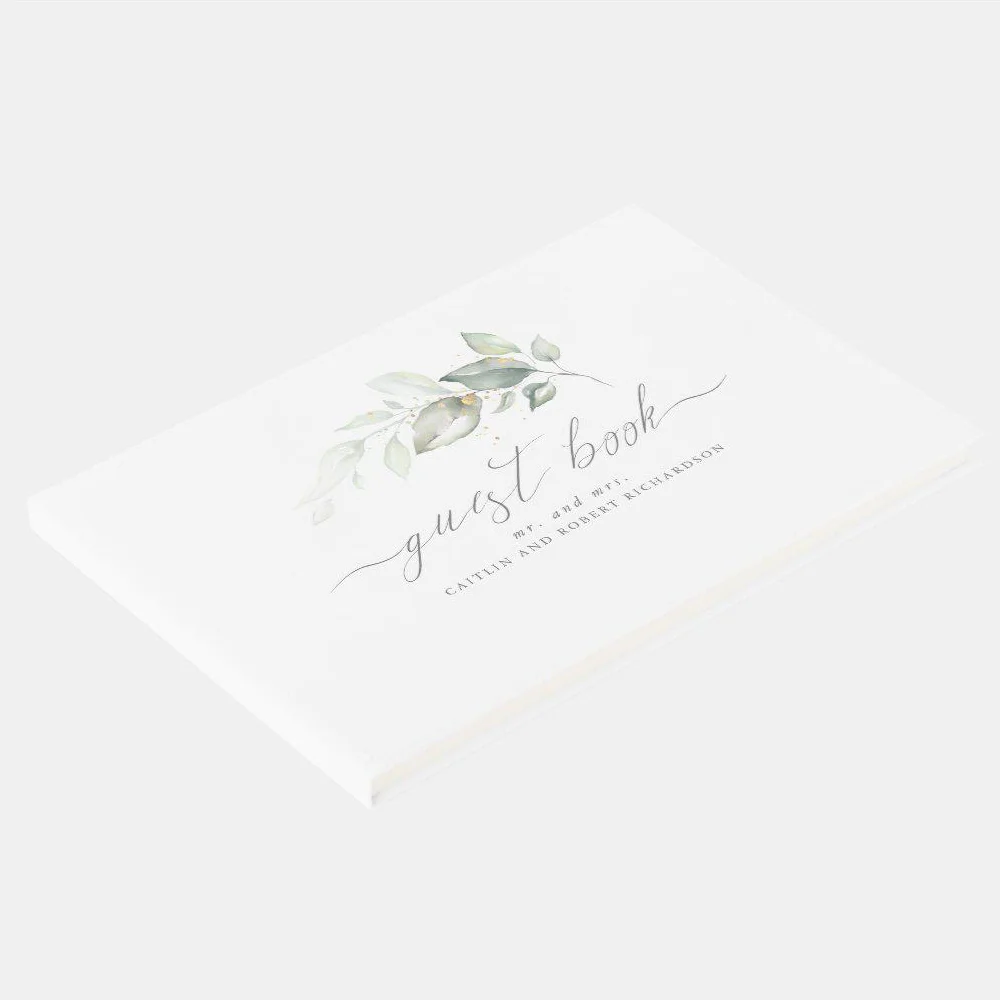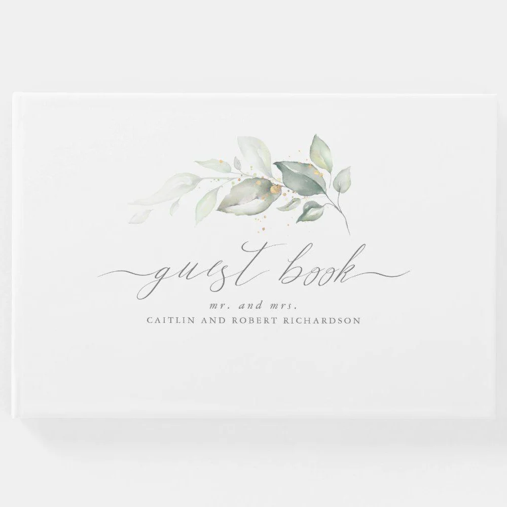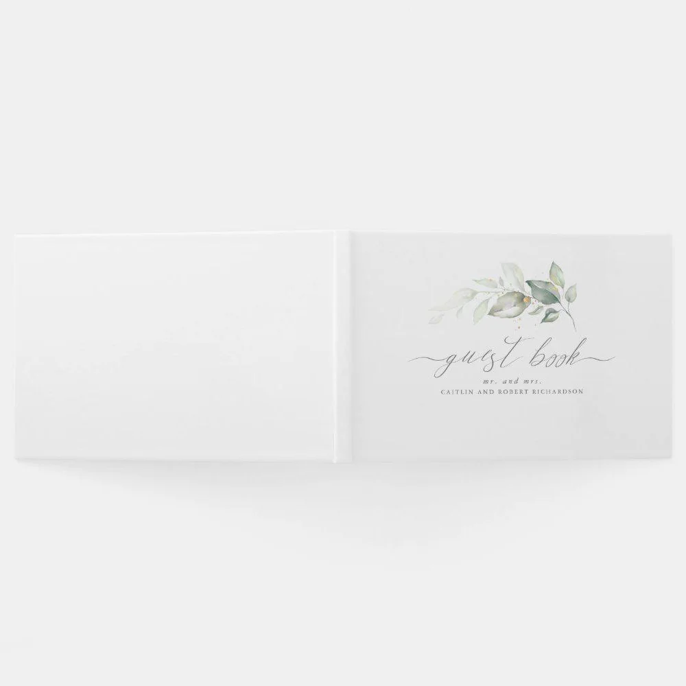 Книга для гостей свадьбы с зеленью и золотыми листьями, индивидуальная книга для гостей свадьбы с зеленью, свадебный фотоальбом, цветочный цветок на заказ