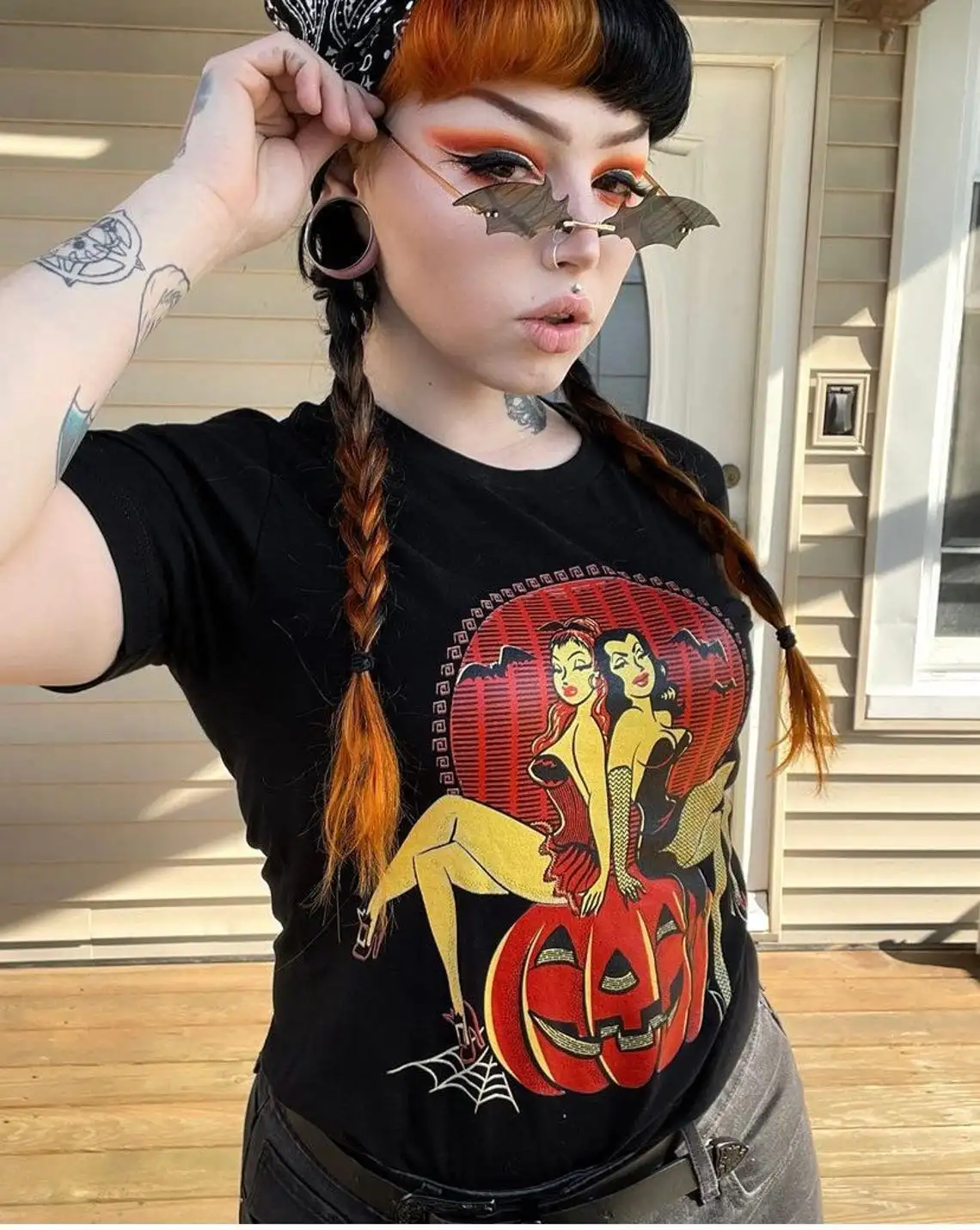 Цветная Милая женская футболка на Хэллоуин с изображением тыквы, 100% хлопок, забавная Повседневная графическая футболка tumblr, модная футболка унисекс
