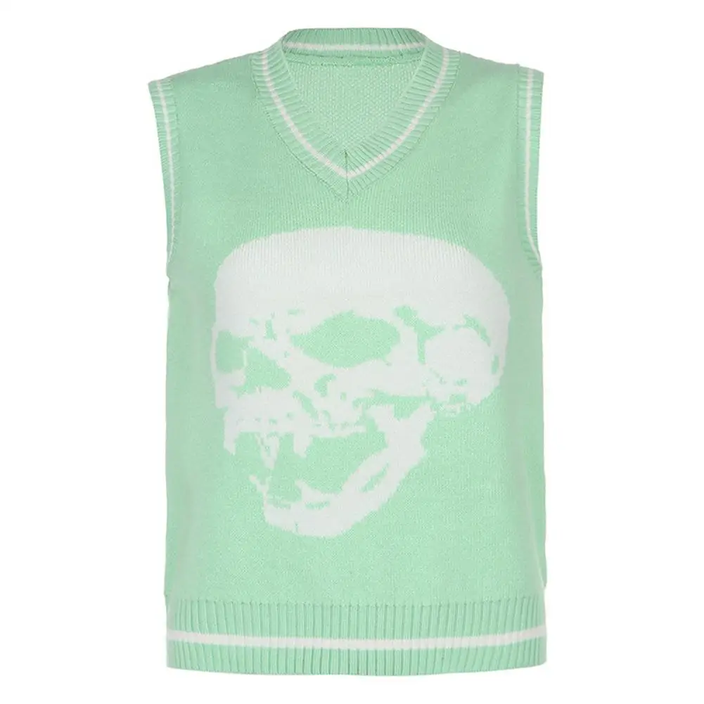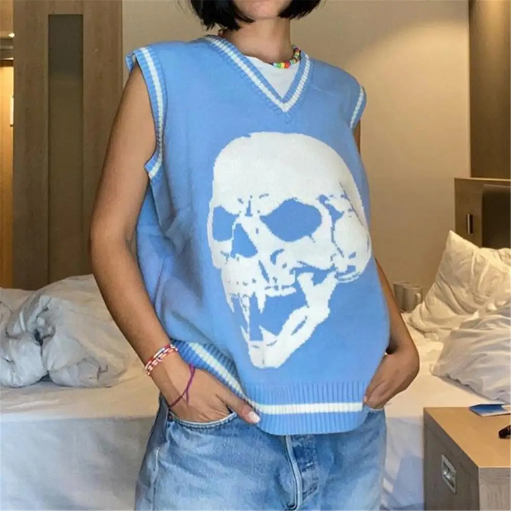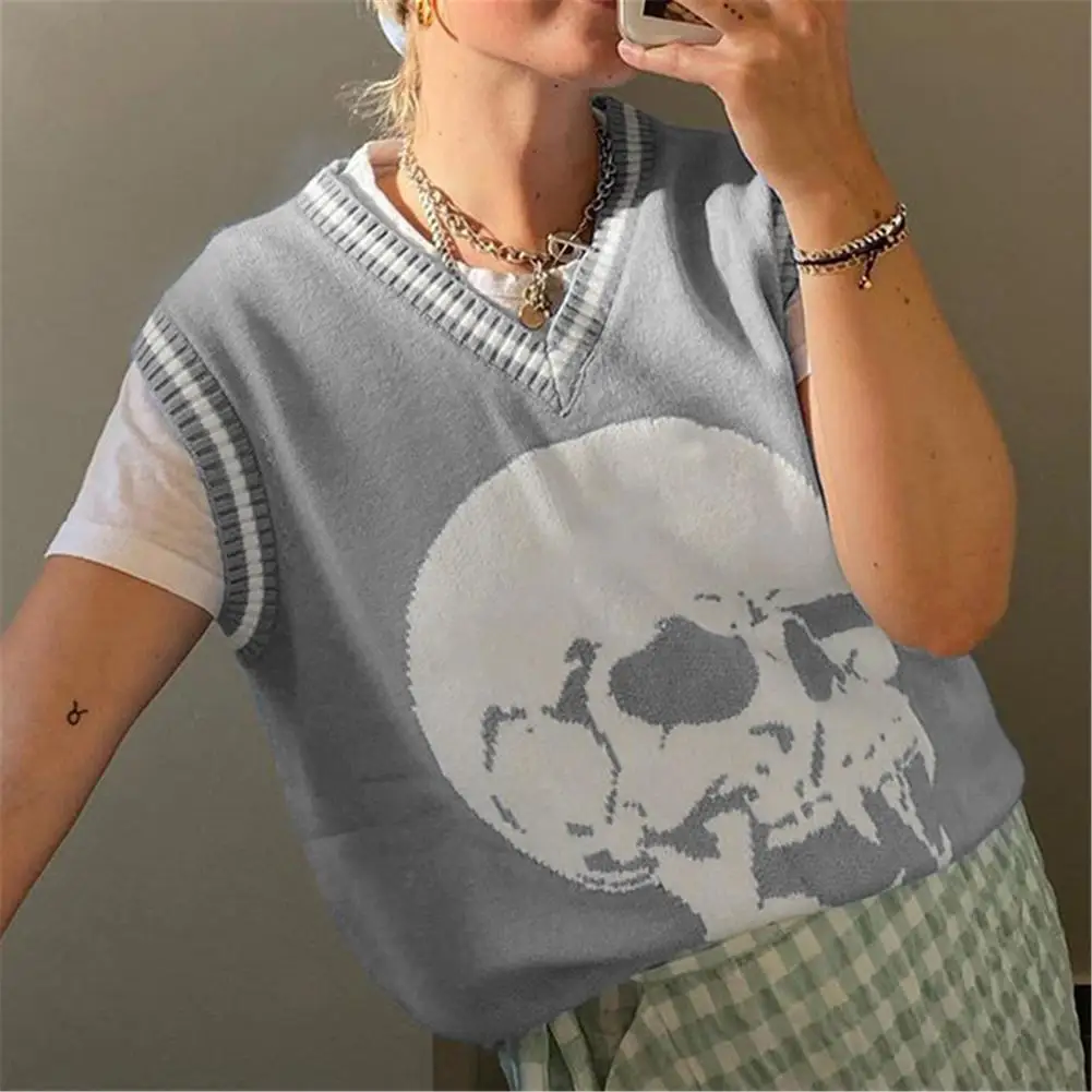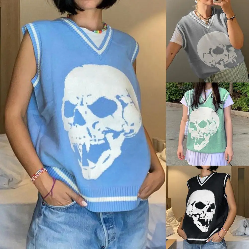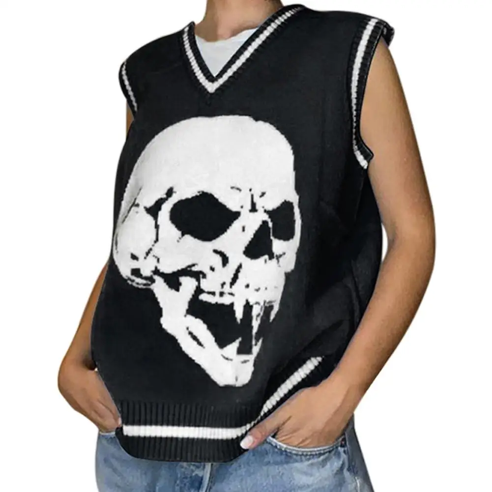 Точки пули:1. Тепло и мода: женский свитер-жилет изготовлен из полиэстера и акриловых волокон, который сохраняет тепло, делая вас модным.2. Легкий дизайн свитера: трикотажный топ без рукавов с v-образным вырезом, свитер с принтом черепа, легкий дизайн свитера, сохраняет тепло на холодную осень и зиму.3. Легко сочетаются: они могут сочетаться с рубашками, футболками, топами, джинсами с высокой талией, шортами, юбками или леггинсами, повседневными и модными.4. Подходит для: женский свитер-жилет подходит для выхода на улицу, Хэллоуина, рождественские вечерние, домашние или школьные праздники. Идеальный свитер-жилет подходит для выхода на осень, зиму и весну.5. Пожалуйста, обратите внимание: пожалуйста, внимательно проверьте таблицу размеров перед заказом и выберите подходящий свободный размер в соответствии с вашими привычками ношения.
