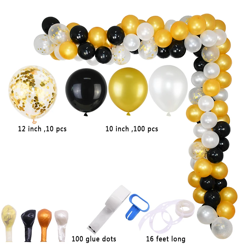 113 шт.компл. Черное золото латексные шары арочный комплект конфетт...