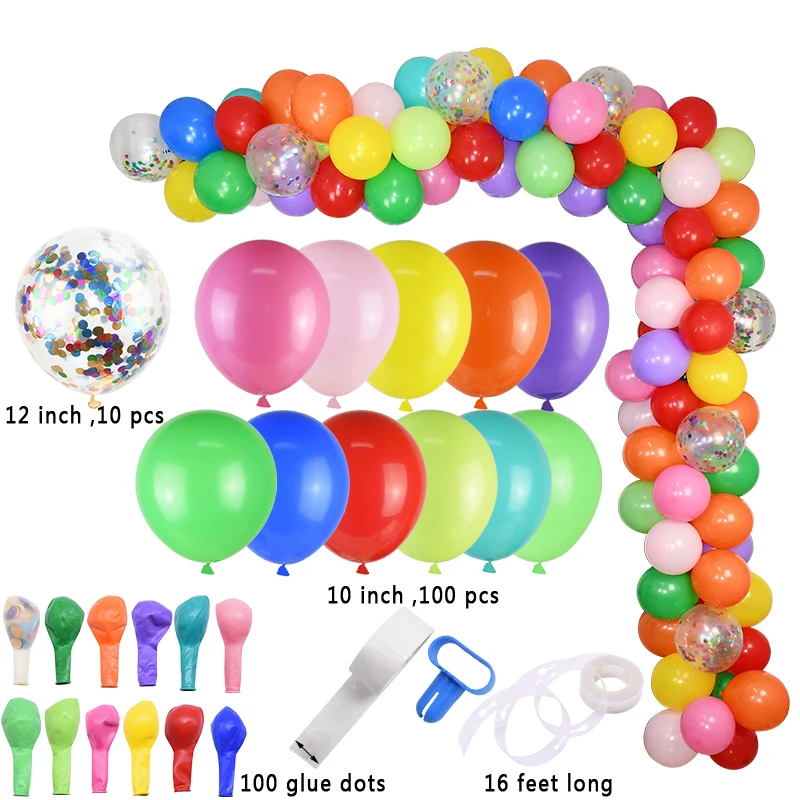 Package include110pcs balloon+1roll glue dot+1pcs balloon knotter+1pcs balloon chain